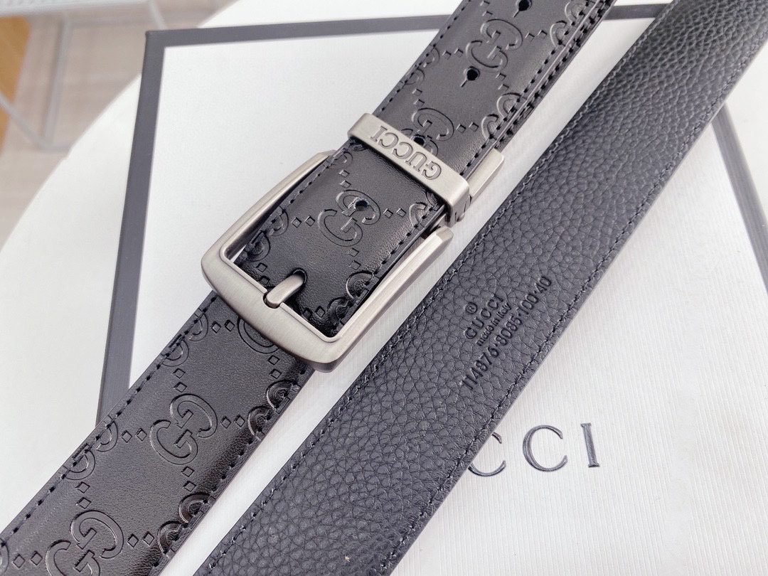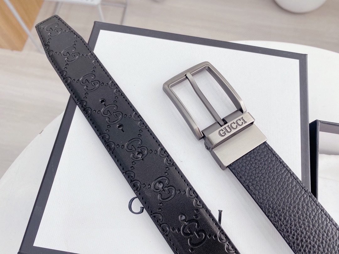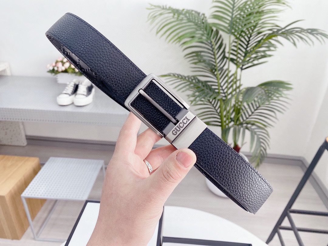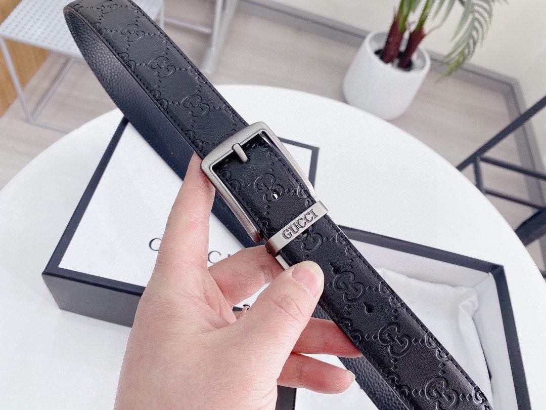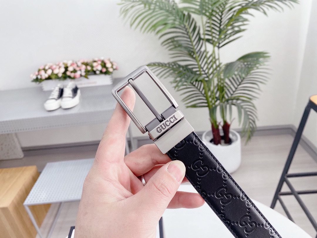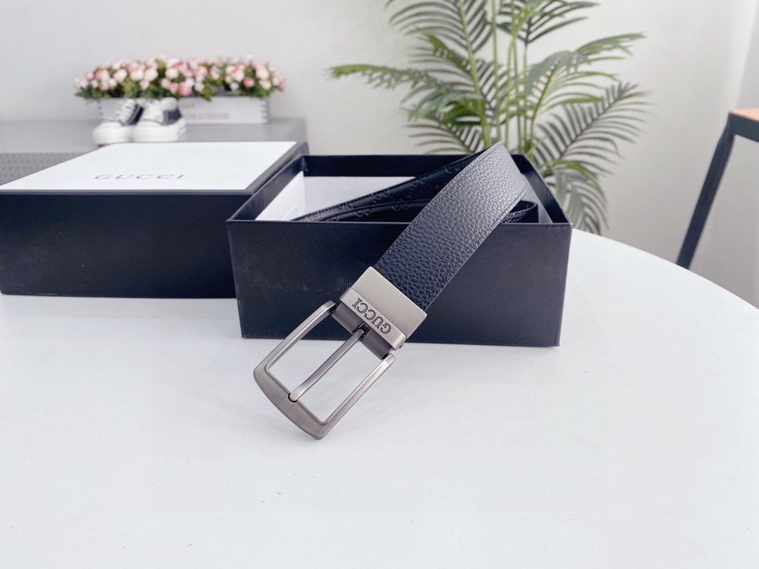 GUCCI silver square buckle black belt, with its elegant black color and exquisite double G logo design, has become the focus of the fashion industry. Made of the finest leather material, soft and delicate to the touch, durable and elastic. The unique silver square buckle is simple yet stylish, highlighting the brand’s unique charm. The belt can be used on both sides.