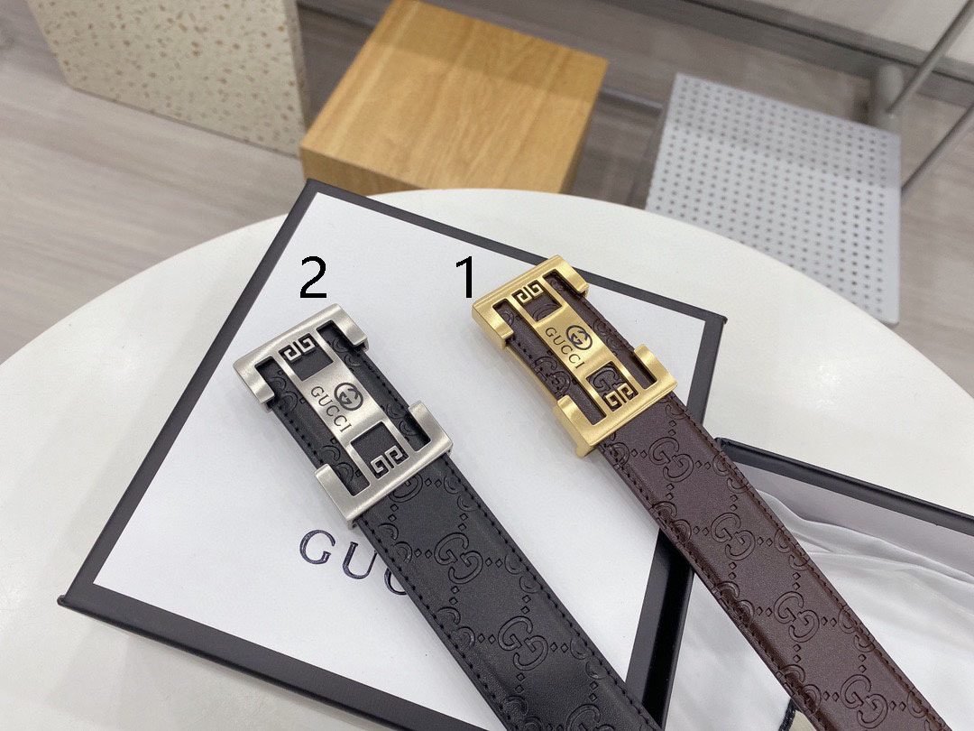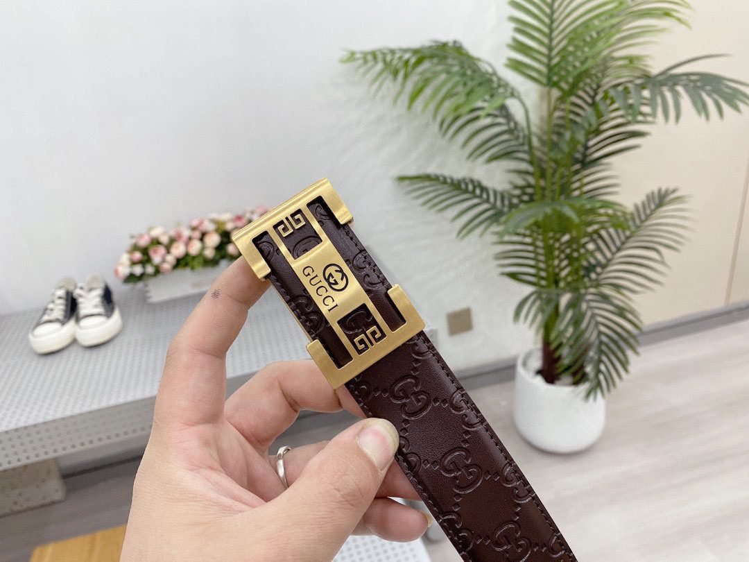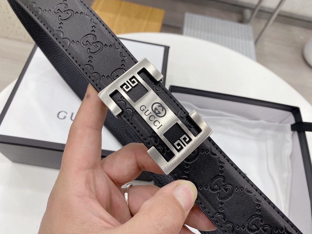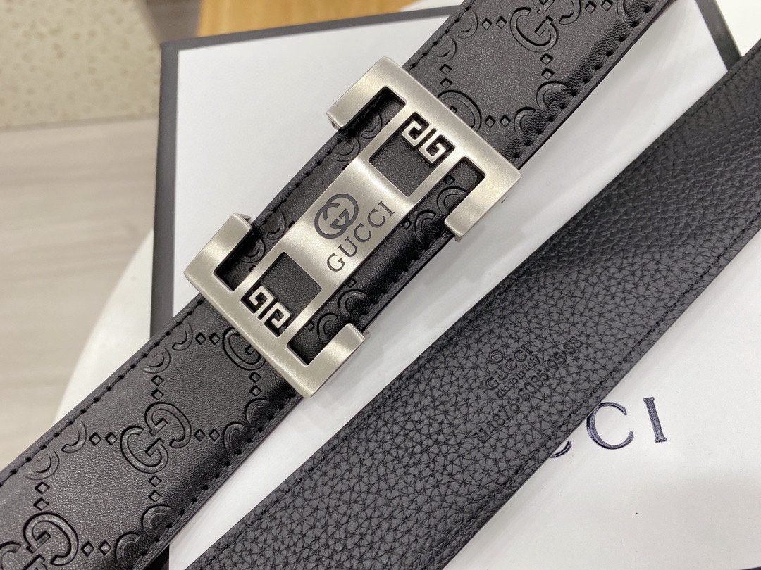 Gucci square buckle black textured belt, metal G buckle belt is made of high-quality leather, soft to the touch and elastic, ensuring comfort for long-term use, showing unique fashion charm, the belt buckle is made with precision technology to ensure a secure fit Solidity and stability.