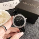 Be the first to review “Gucci watch with round diamond border dial and leather strap” Cancel reply