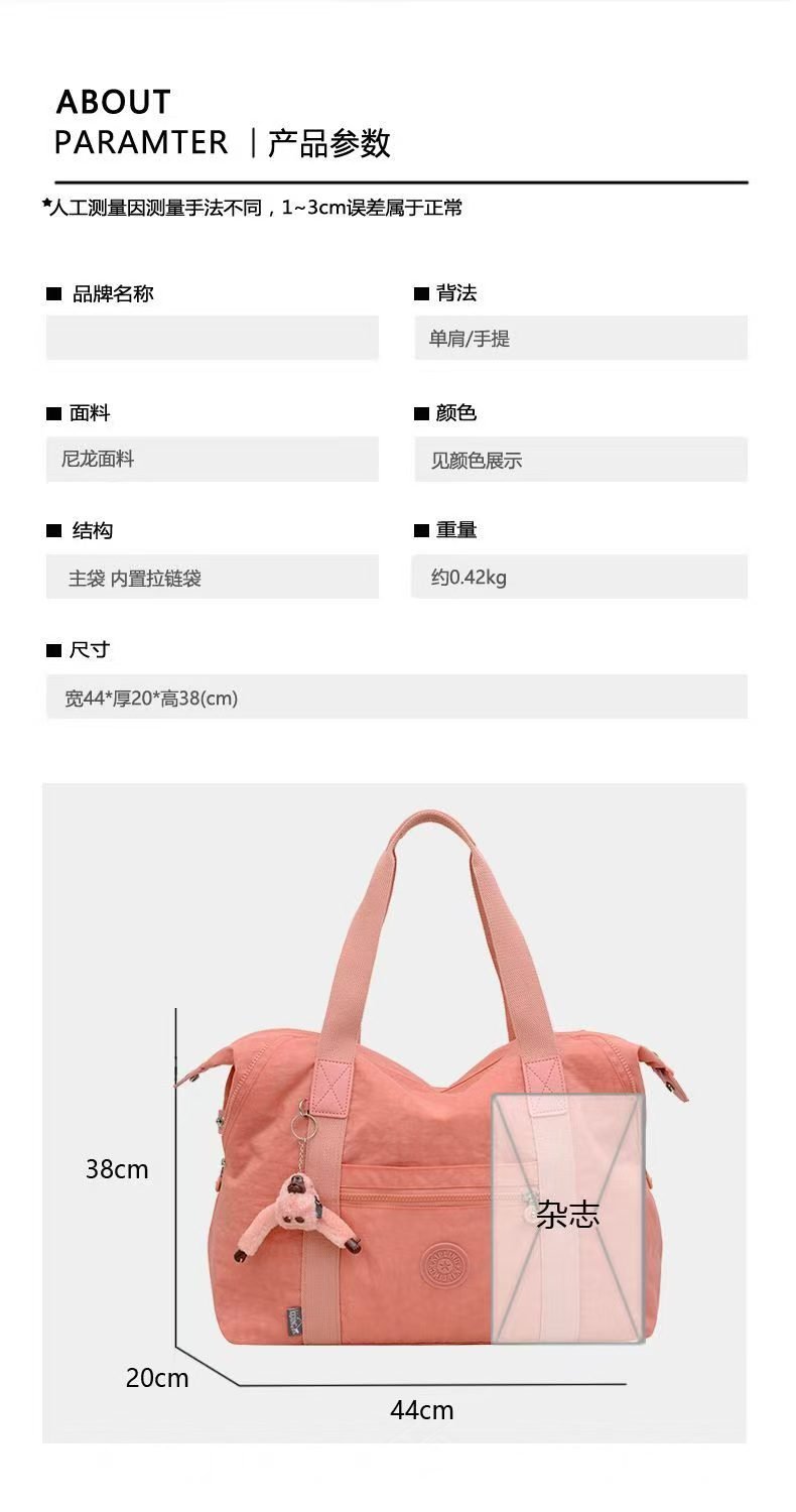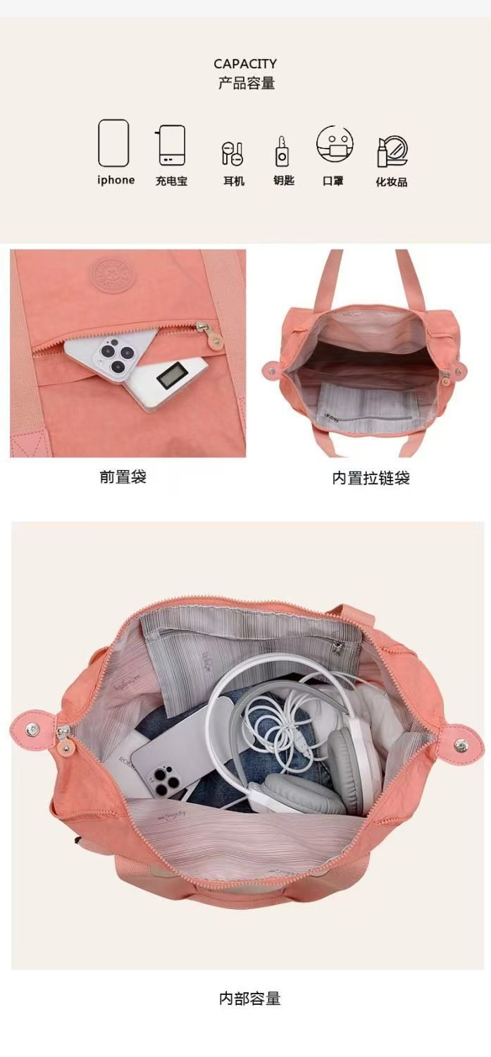 This Kipling travel tote bag is built on the brand’s signature eco-friendly, durable nylon fabric, paired with fresh pastel hues and the iconic monkey charm—blending lightweight practicality with youthful vibrancy, making it the ultimate all-rounder for short trips, gym sessions, commuting, and shopping.