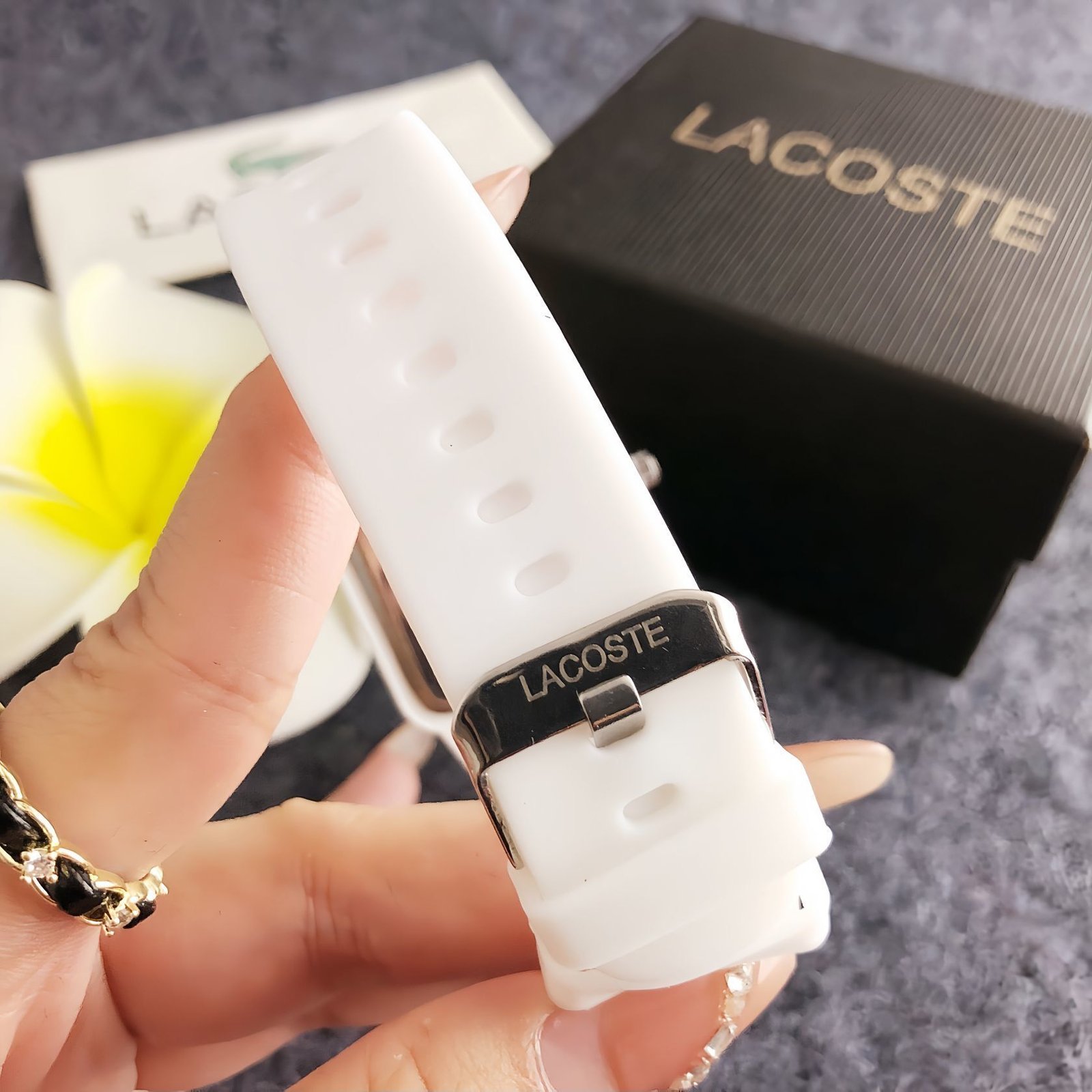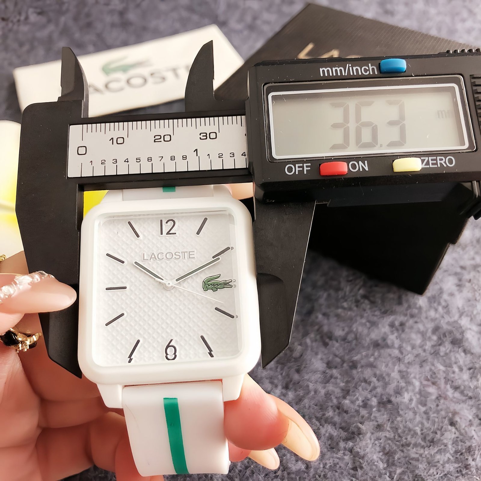 Lacoste A18 series watches embody playful casual sophistication, featuring square dials with the brand’s iconic crocodile motif, colorful silicone straps in shades like white, pink, light blue, gray, red, navy, green, and charcoal, and clean, readable detailing. With Lacoste’s legacy of sporty-chic design and versatility, these timepieces exude laid-back style. Perfect for those who appreciate a blend of geometric design and vibrant color options, they make a stylish statement suitable for everyday wear and casual adventures.