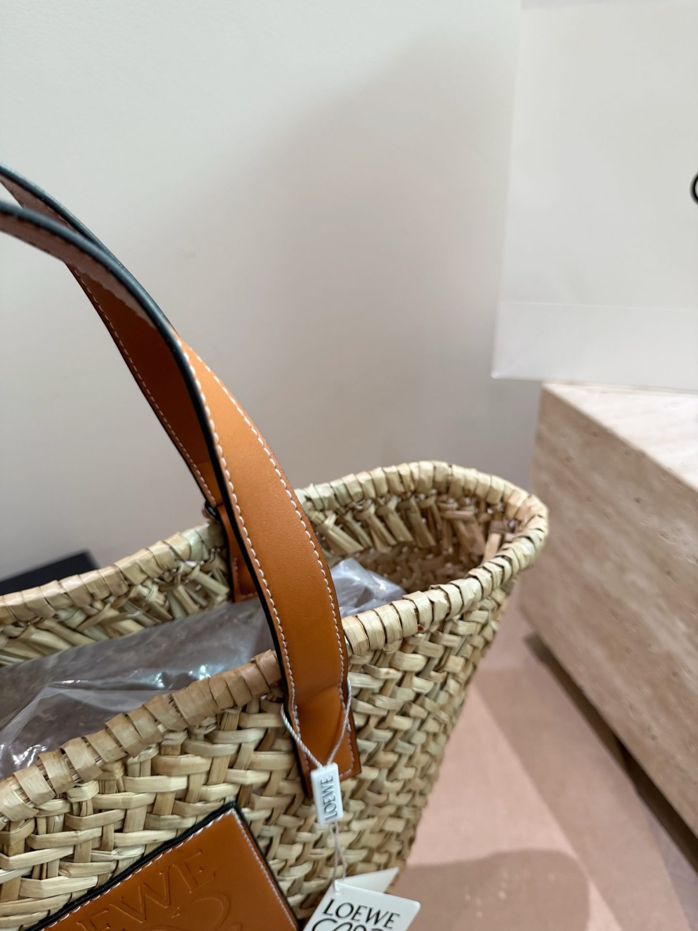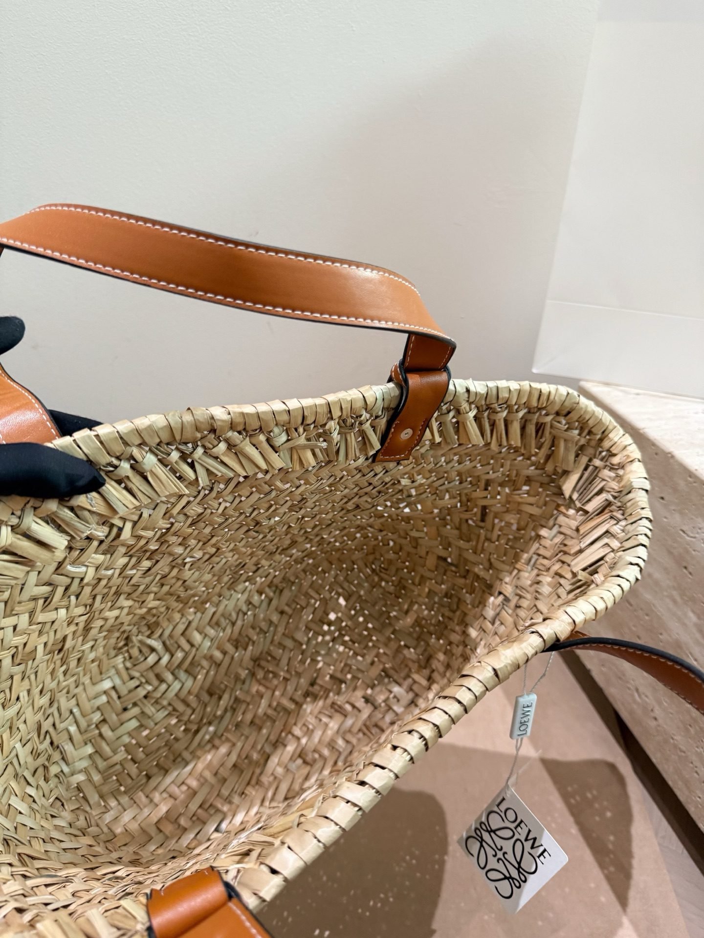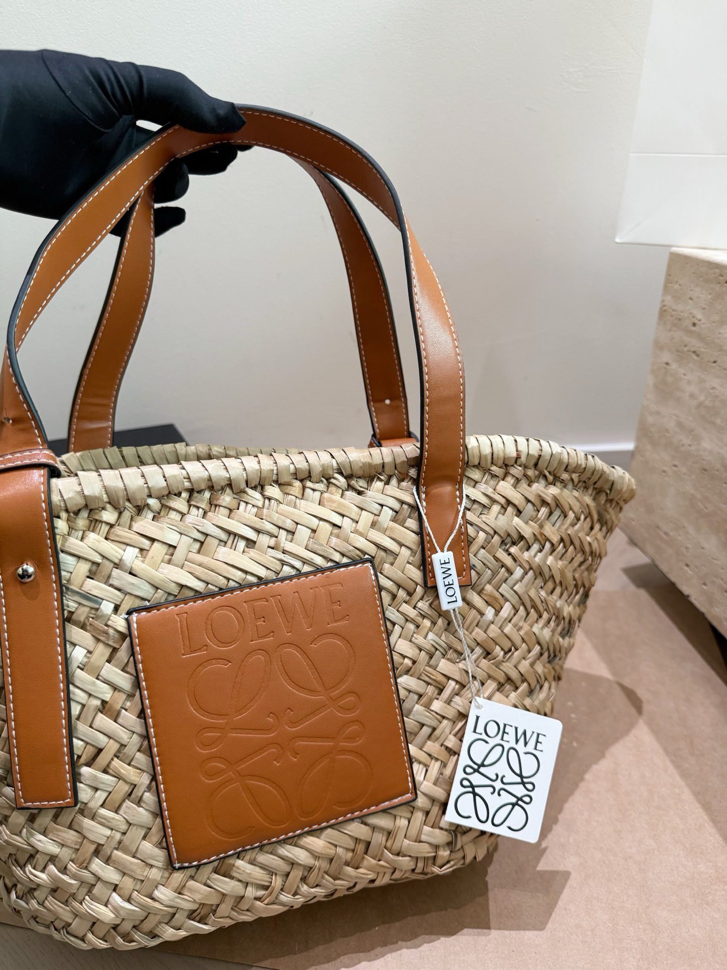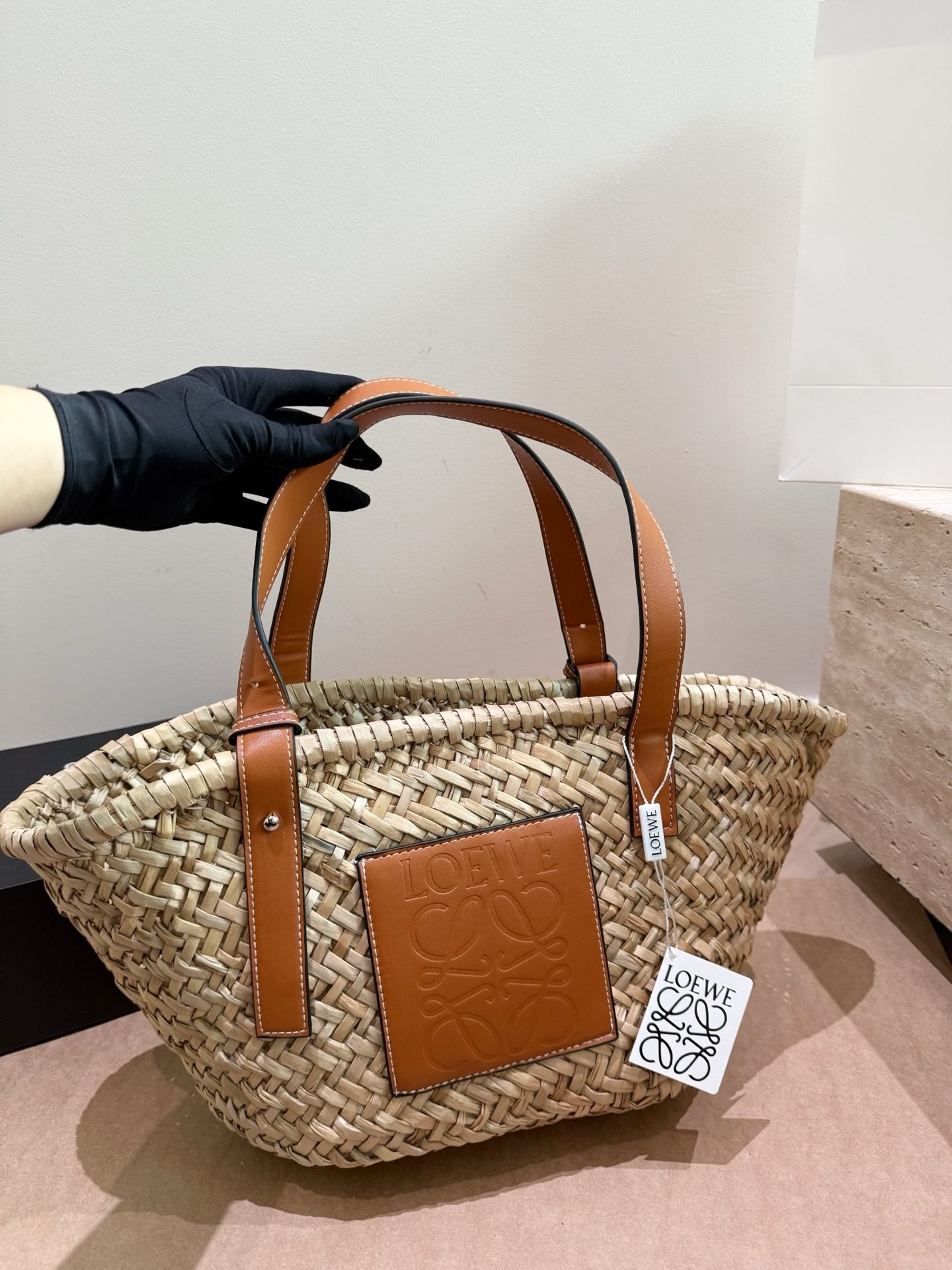 LOEWE Anagram Woven Straw & Leather Tote Bag – Vacation Style Large Capacity Handbag (Size 25cm)