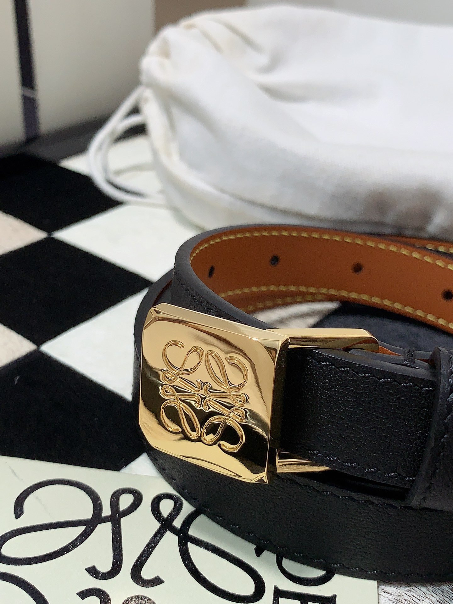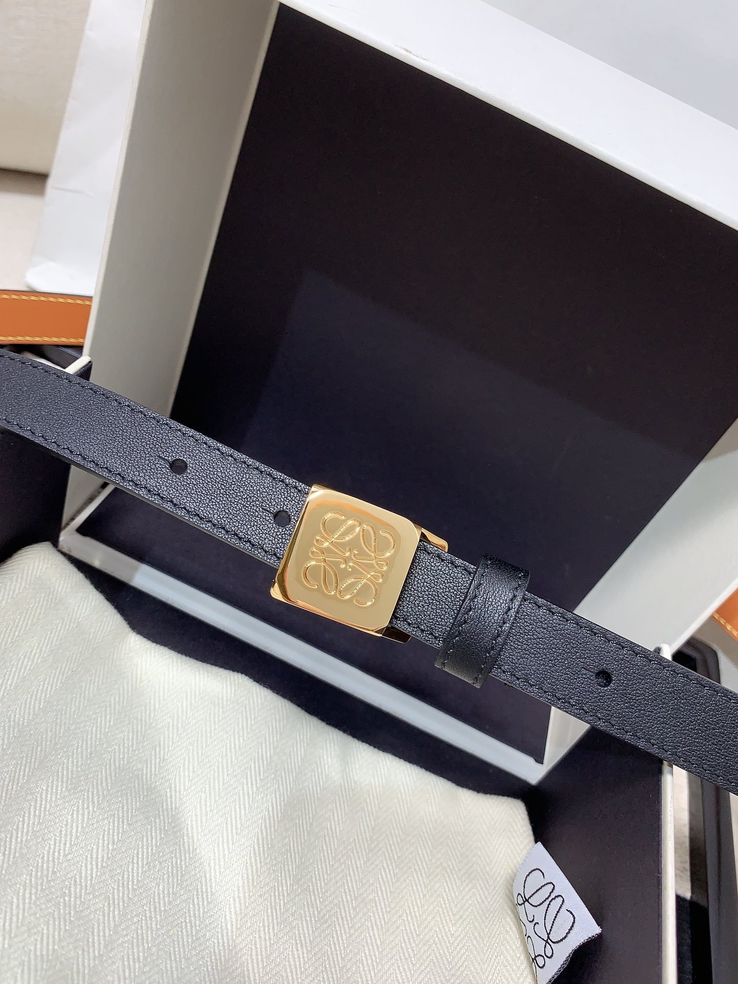 LOEWE slim belt in smooth calfskin with Anagram padlock pin buckle