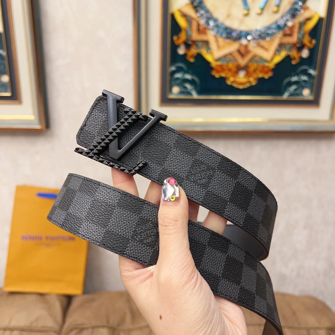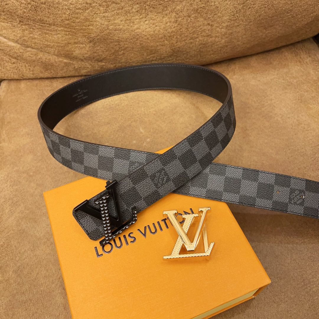 This Louis Vuitton black V-buckle black plaid belt highlights the brand’s nobility and elegance with its unique design and exquisite craftsmanship. The belt is made of high-quality leather, which is soft to the touch and durable, ensuring comfort and durability. The unique gray plaid pattern design and black LV logo buckle highlight the brand’s unique charm and fashion sense.