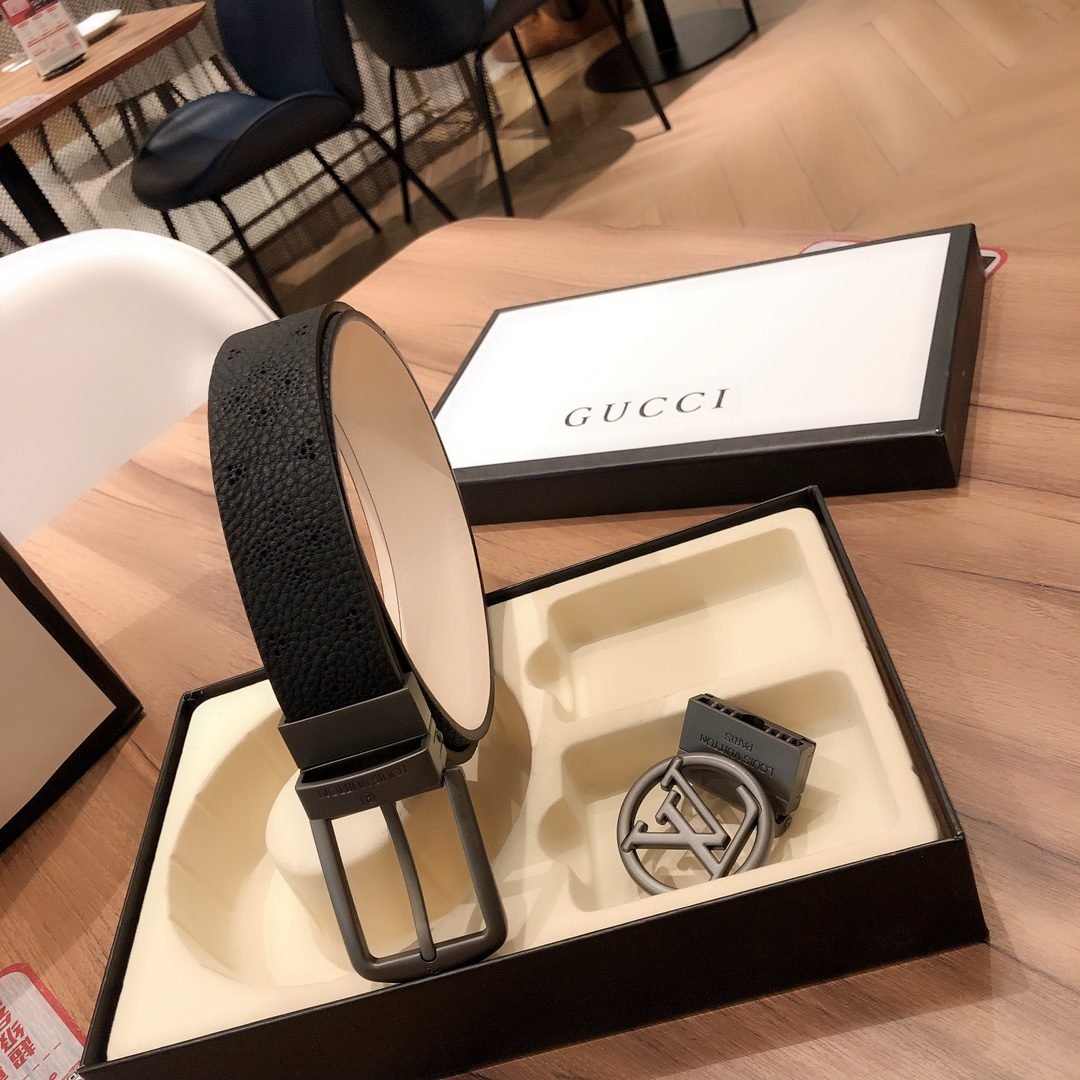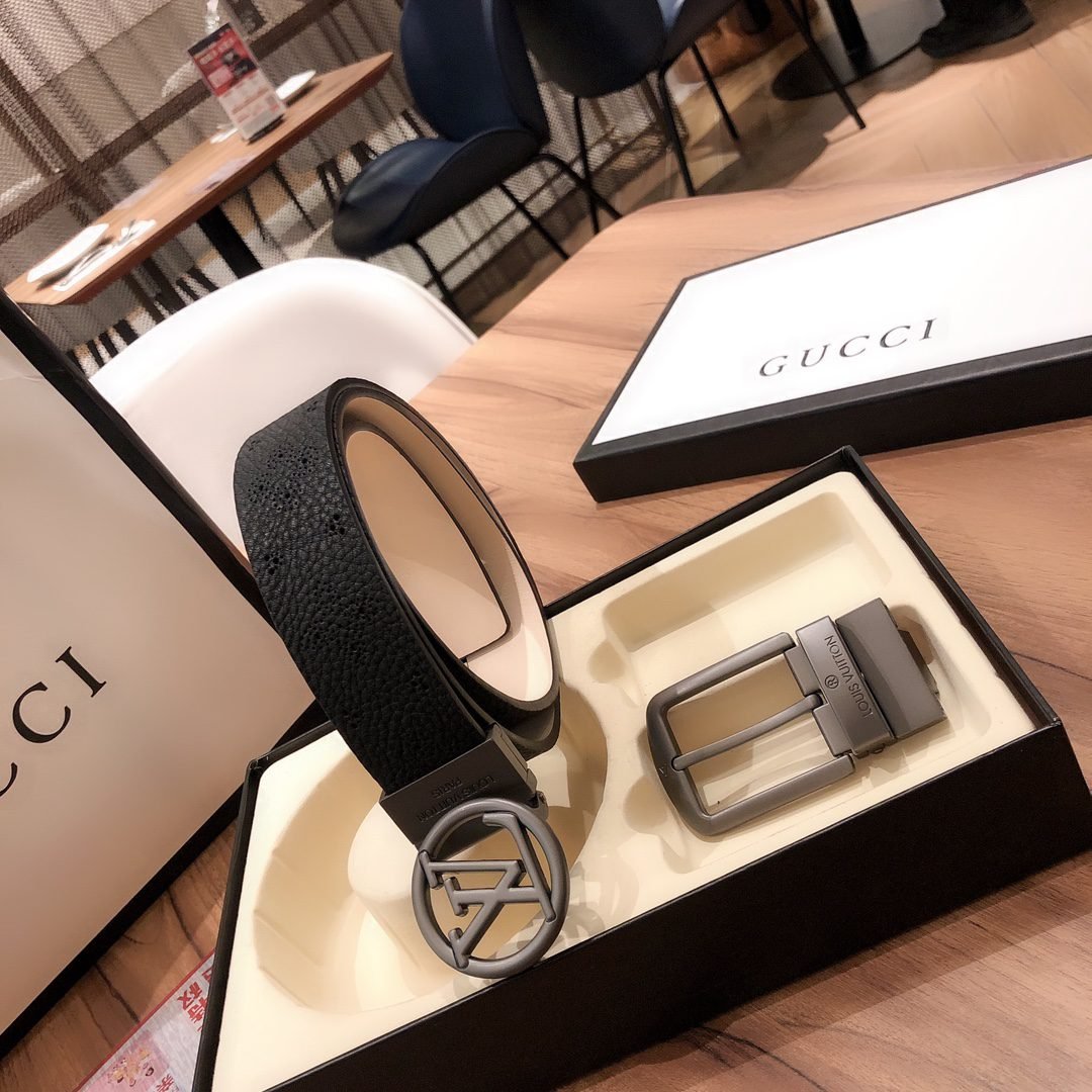 Louis Vuitton classic double buckle V-buckle belt gift box set, simple luxury, noble and elegant