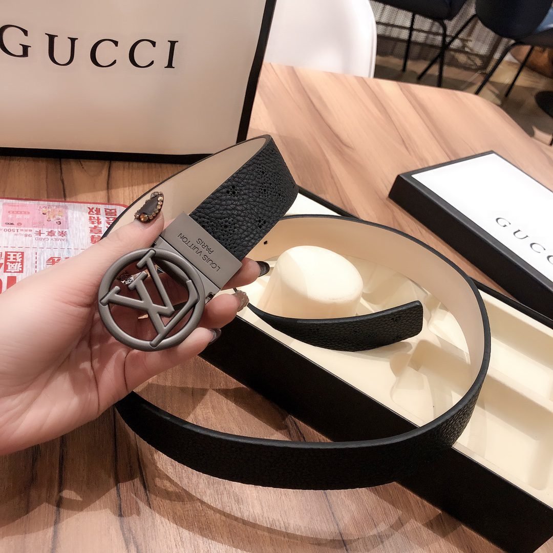 Home Belt LV belt Louis Vuitton classic double buckle V-buckle belt gift box set, simple luxury, noble and elegant