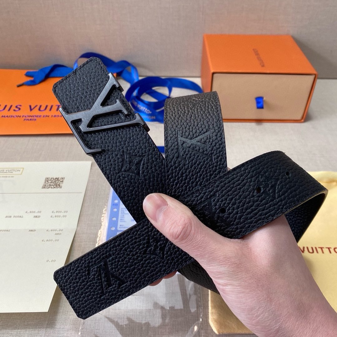 Home Belt LV belt Louis Vuitton classic V-buckle black belt, simple and elegant, low-key luxury