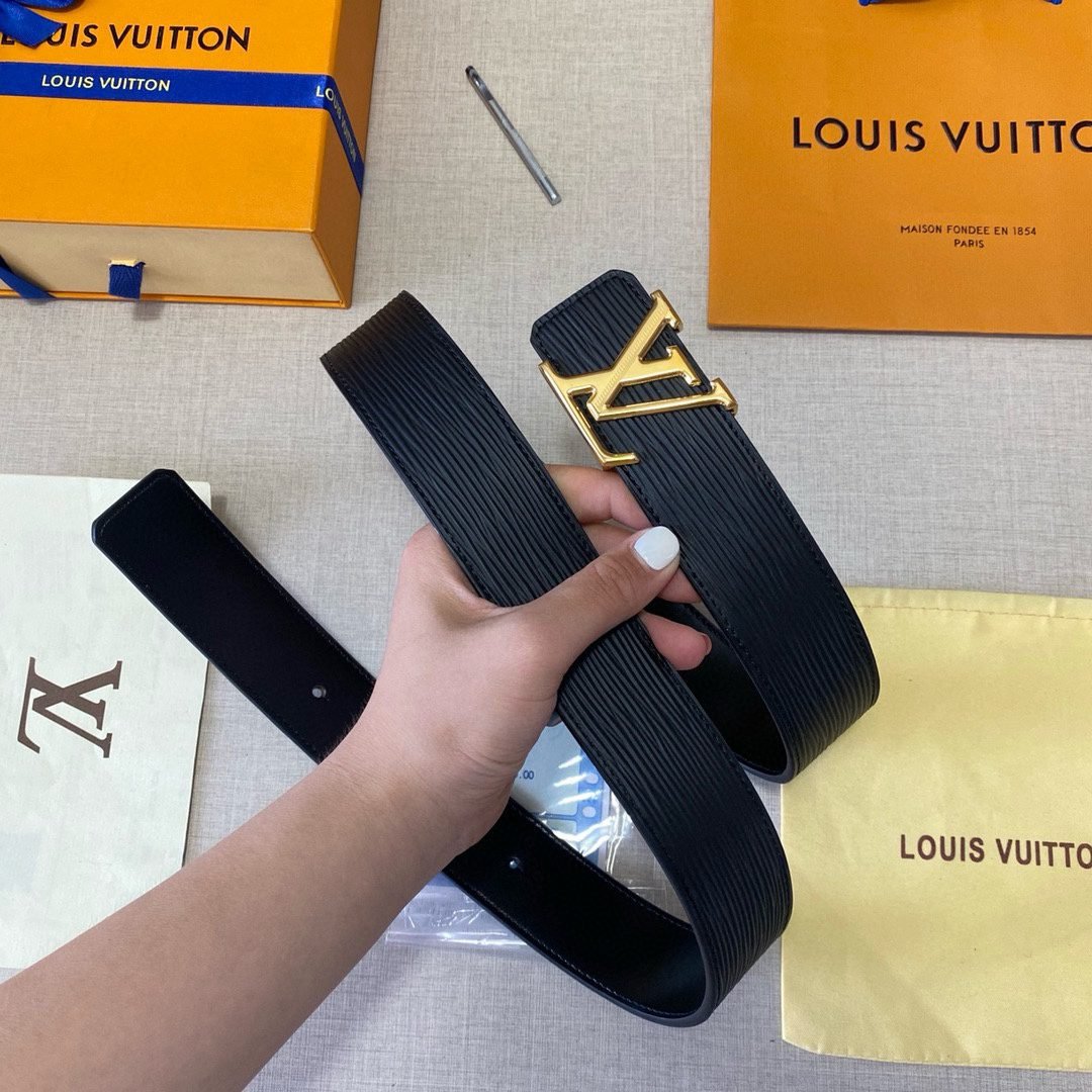 This Louis Vuitton black belt with gold V-shaped buckle has become a classic in the fashion industry with its simple yet elegant design. Selected high-quality black leather, soft and delicate to the touch, deep in color, showing noble temperament. The unique V-shaped buckle design is inlaid with Louis Vuitton’s iconic golden LOGO, which is not only sturdy and durable, but also highlights the nobility and luxury of the brand.