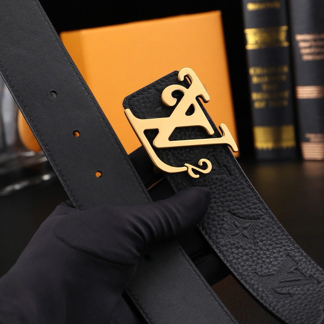 Louis Vuitton’s gold V-buckle black textured belt brings men the ultimate fashion experience with its unique charm and unparalleled quality. Selected top-quality black leather, finely sanded and polished, presents a deep and lustrous texture that will make you fall in love at first sight. The belt buckle head adopts the classic golden “LV” logo design, highlighting the brand’s nobility and luxury.