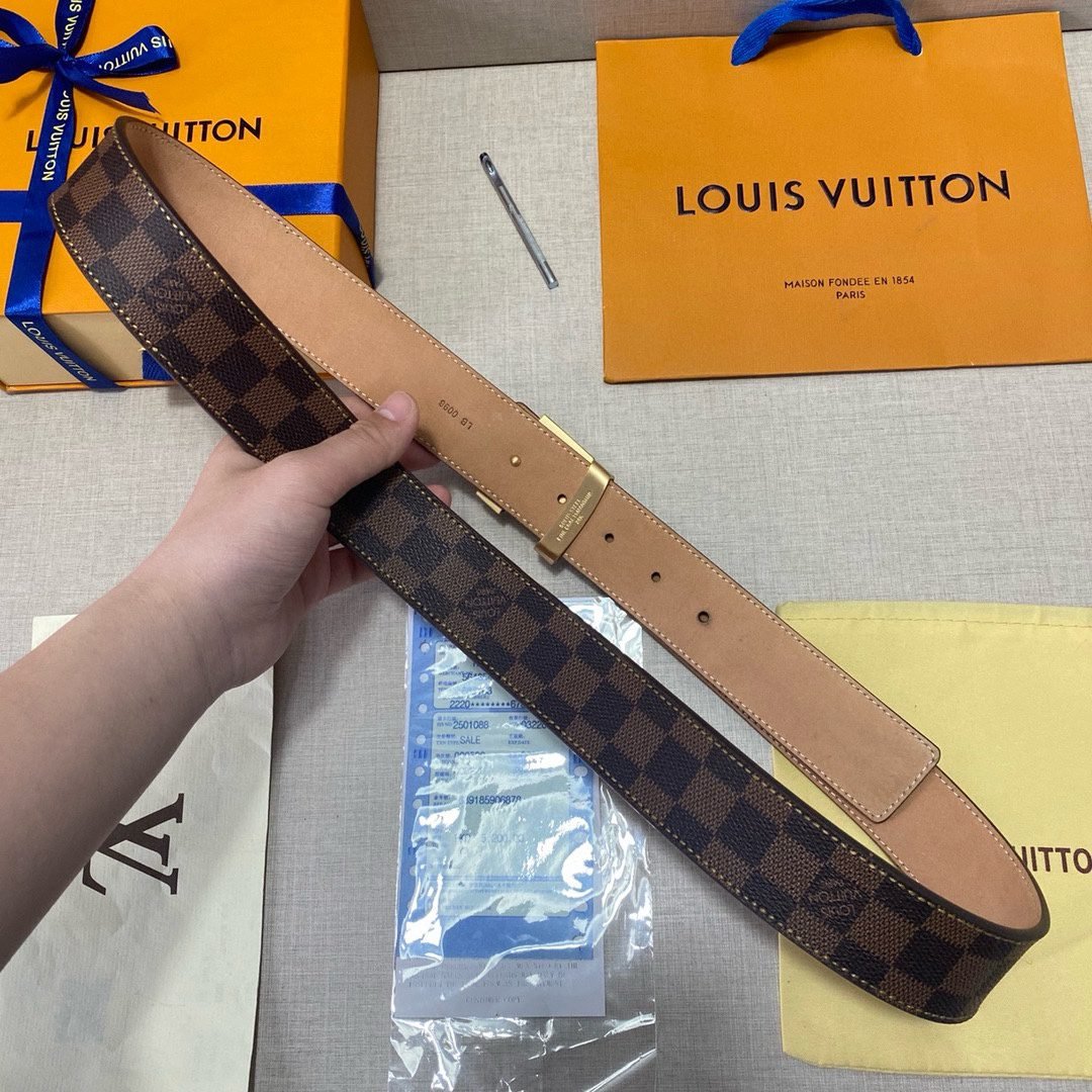 This Louis Vuitton V-buckle brown plaid belt shows its extraordinary taste and charm with its unique brand logo and exquisite craftsmanship. It adopts a classic plaid pattern of brown and black and is paired with a gold buckle, showing a low-key and luxurious beauty. The belt is made of high-quality leather, which is soft and elastic to the touch, wear-resistant and durable, adding elegance and texture to your fashion style.