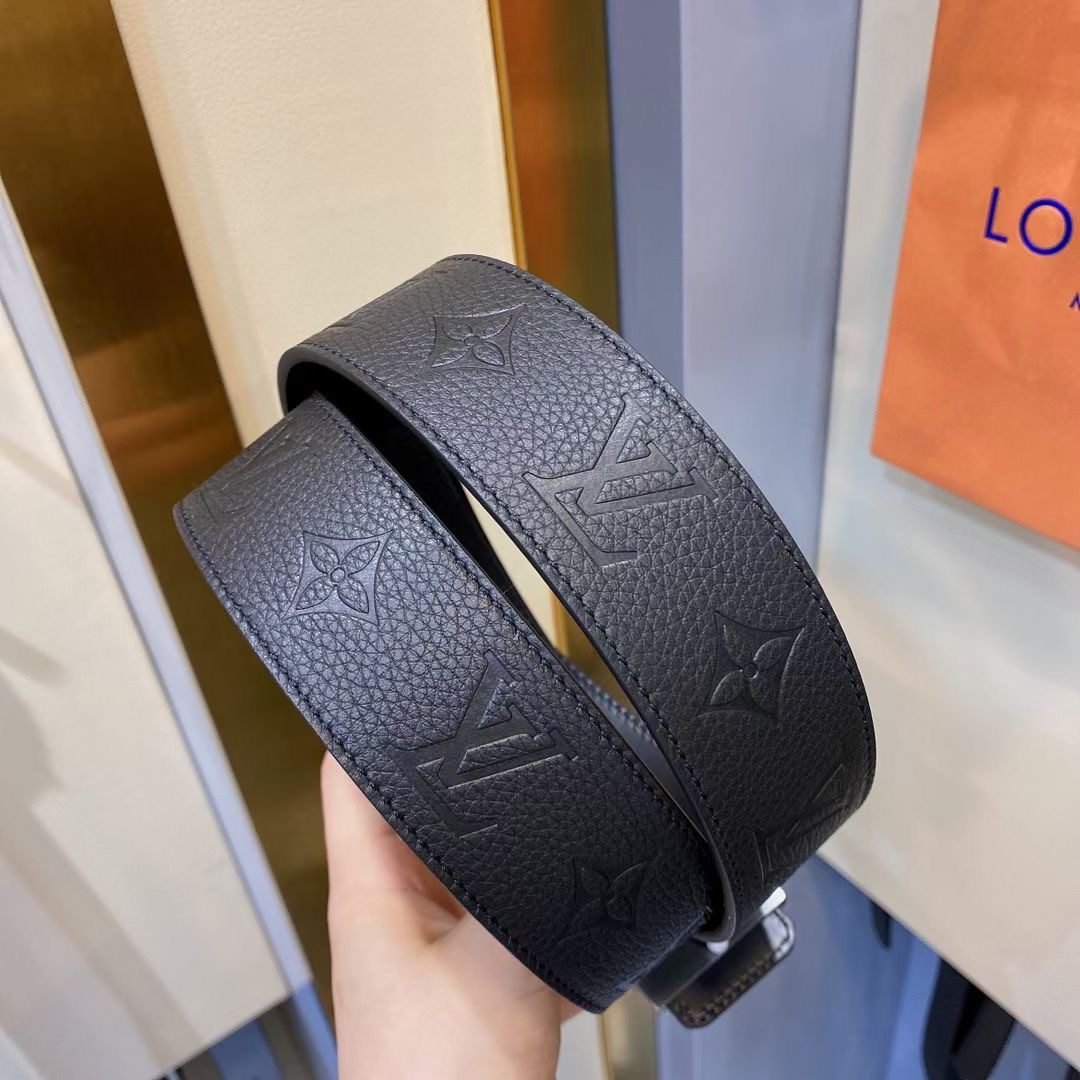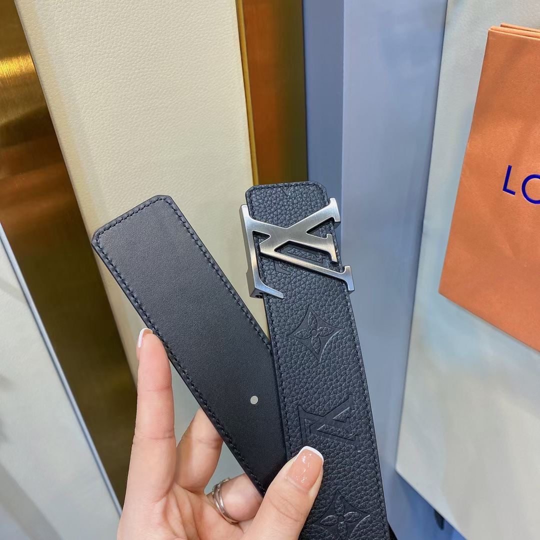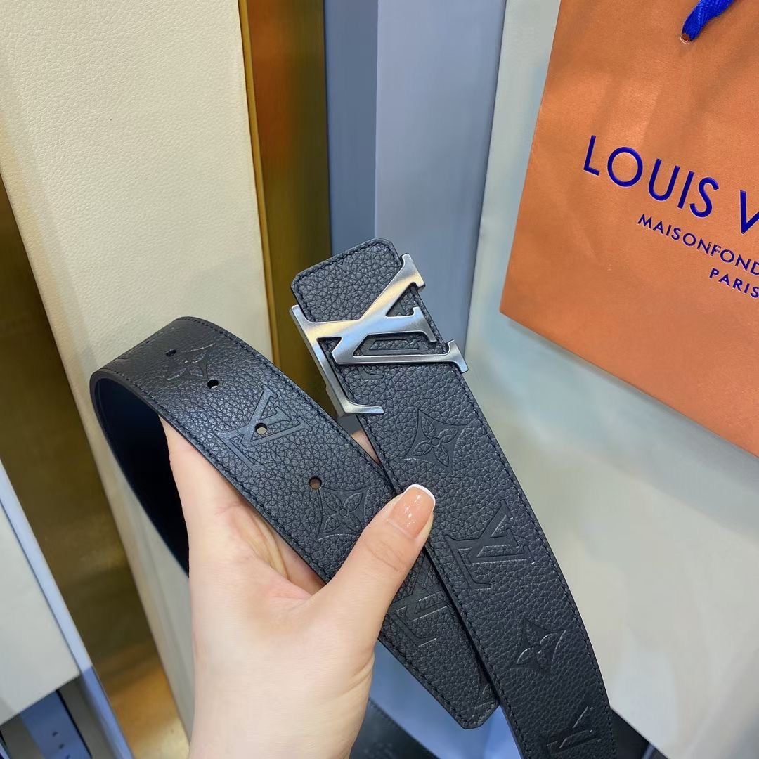 Home Belt LV belt Louis Vuitton silver buckle black textured belt, simple and elegant, low-key luxury