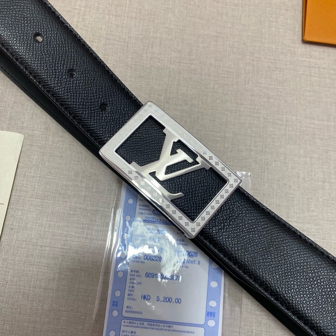 This Louis Vuitton black belt with silver square buckle is made of top-grade leather material, and the black tone shows calmness and grandeur. The unique silver square buckle is engraved with the classic “LV” logo, highlighting the wearer’s distinguished status and unique taste.