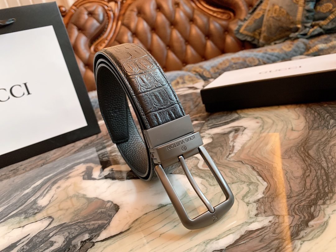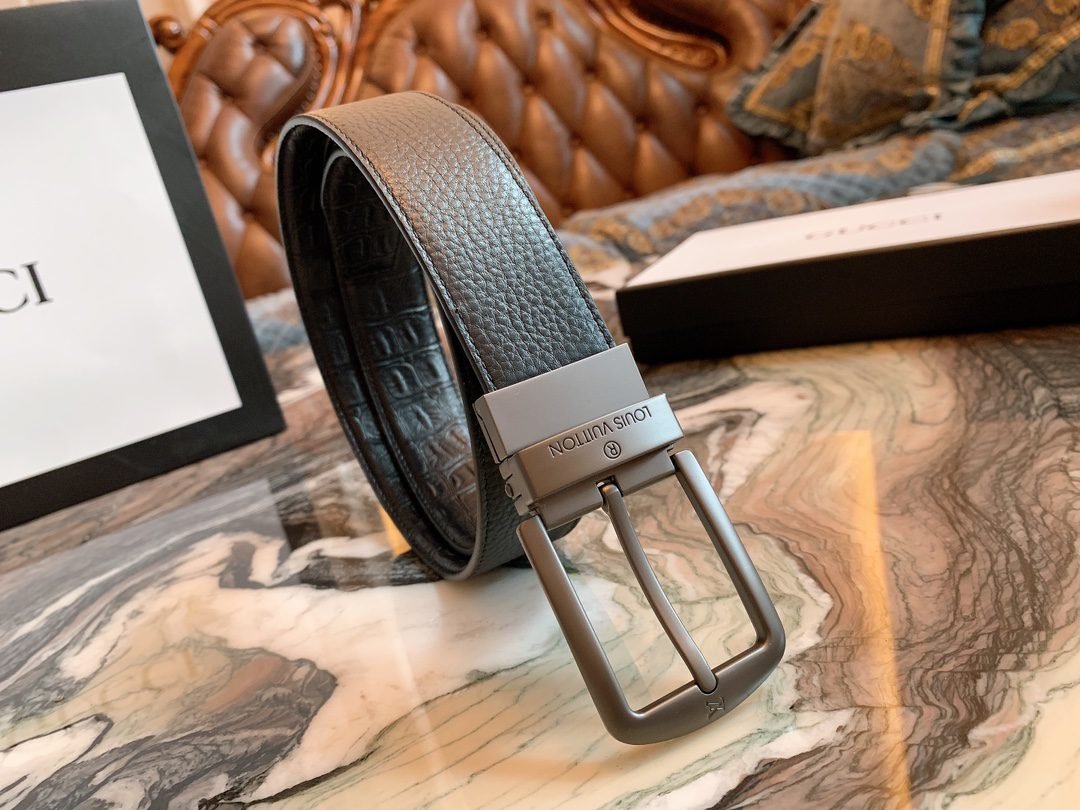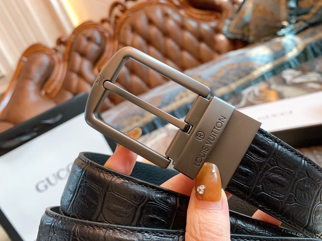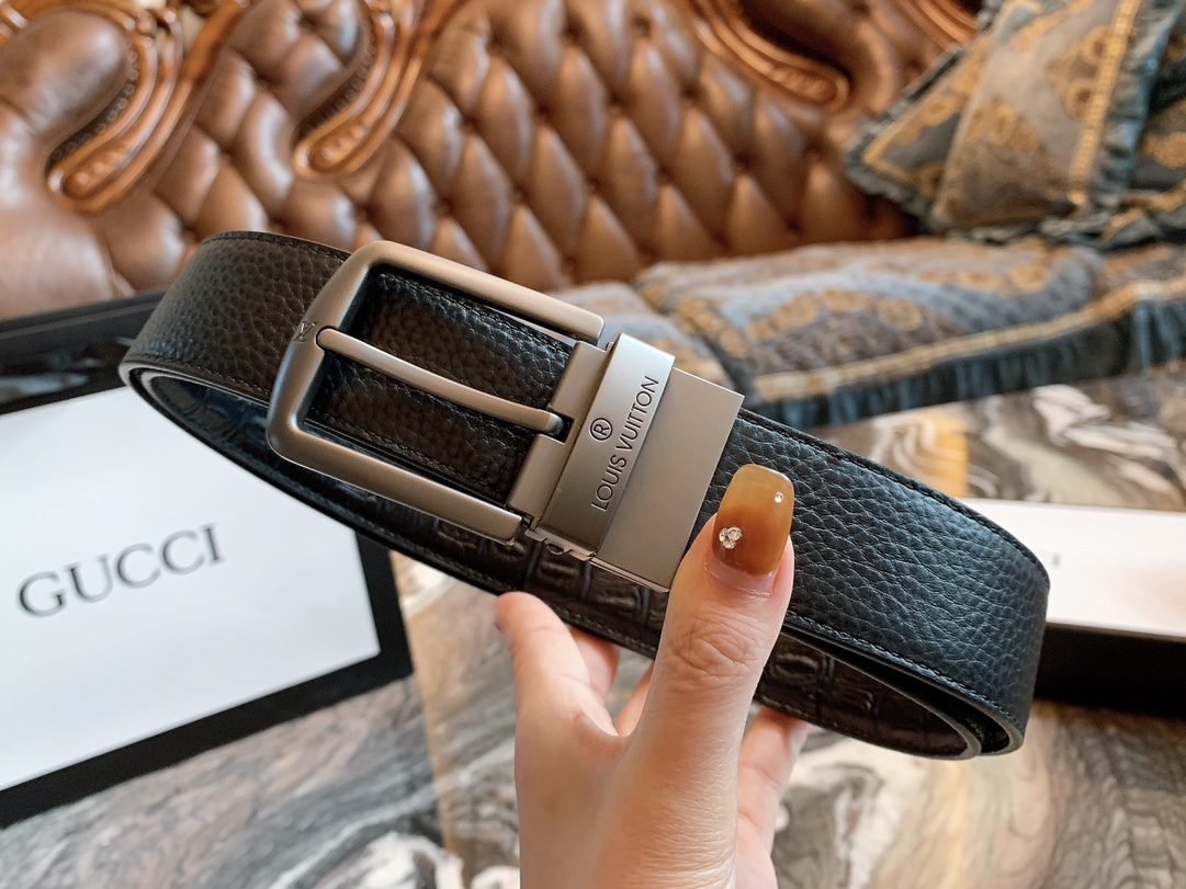 This Louis Vuitton black belt with silver square buckle is made of high-quality black leather with fine surface texture and soft and comfortable feel. The silver buckle is made with exquisite craftsmanship and is engraved with “Louis Vuitton”, highlighting the high-end quality of the brand’s co-branding.