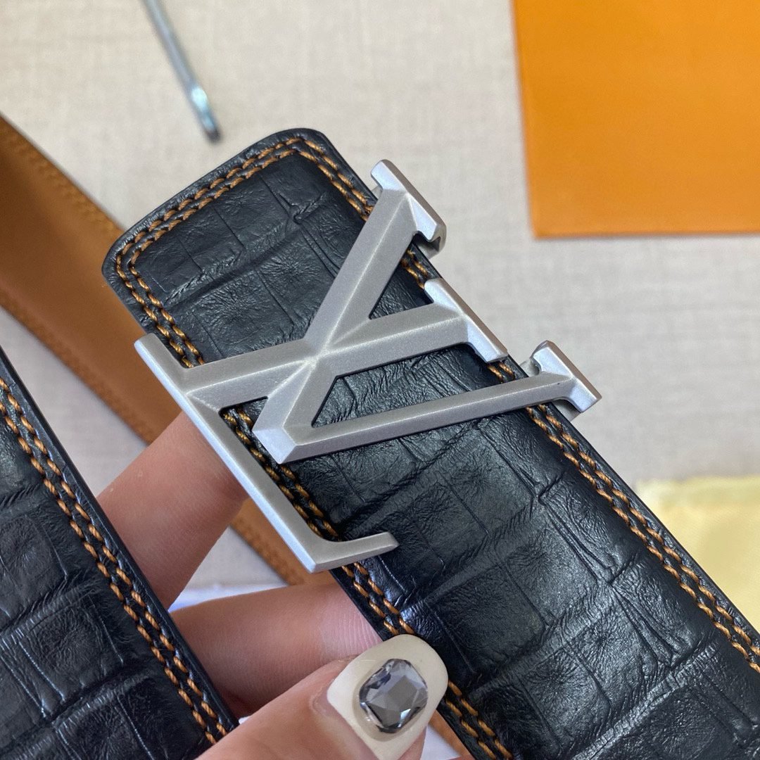 Home Belt LV belt Louis Vuitton silver V buckle black crocodile pattern belt, simple and elegant, elegant and luxurious