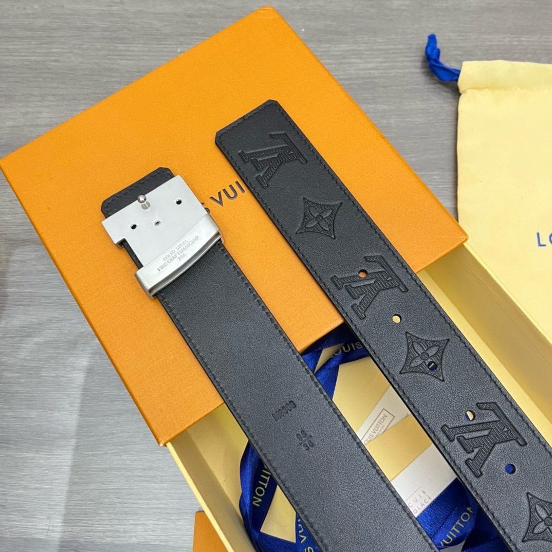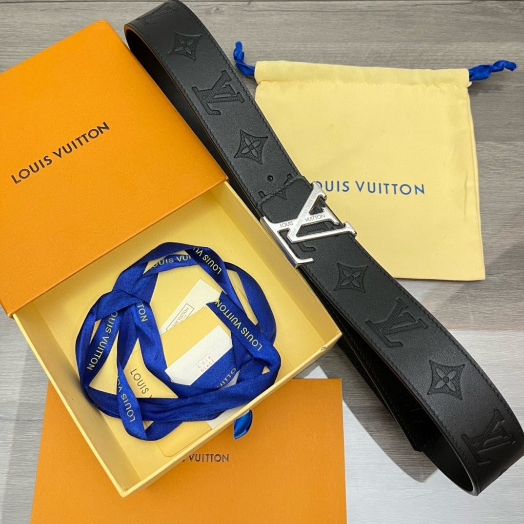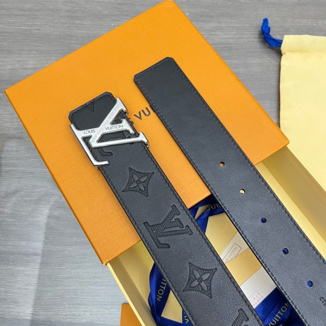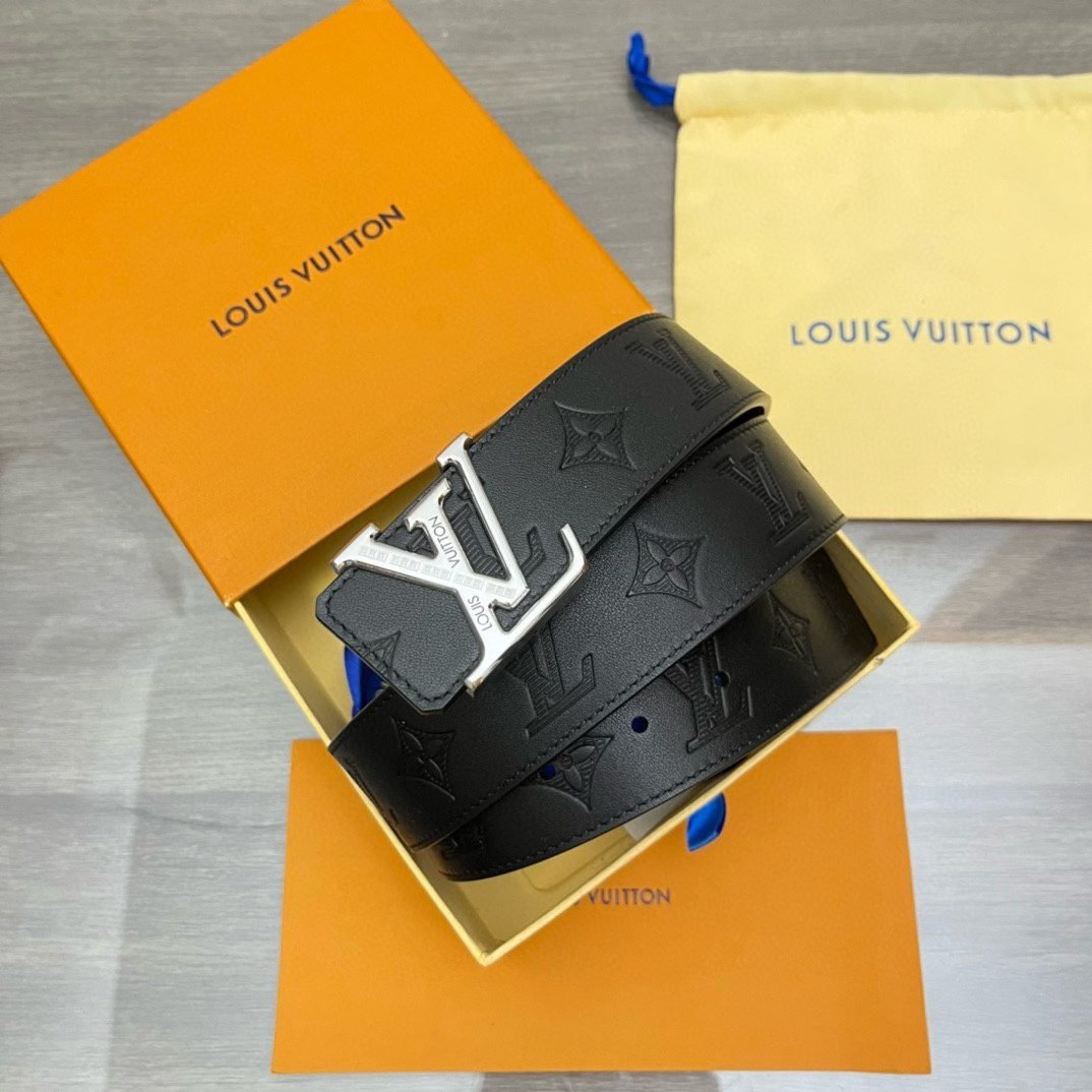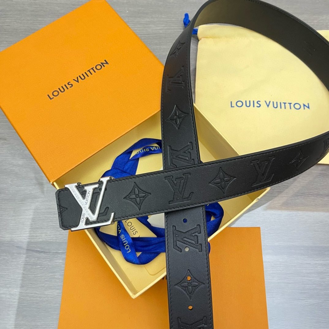 Home Belt LV belt Louis Vuitton silver V buckle black textured belt, simple and elegant, noble and elegant