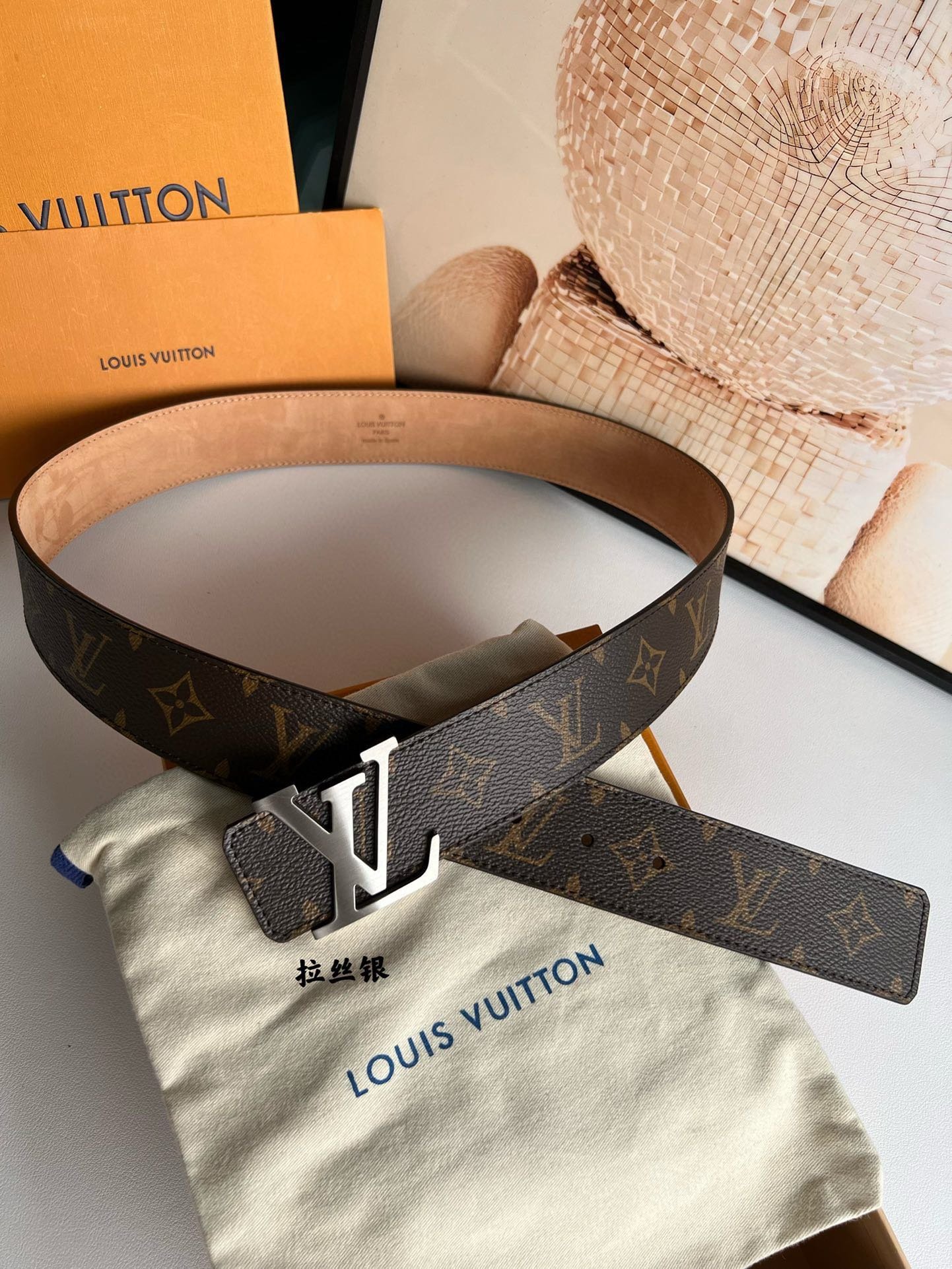 Home Belt LV belt Louis Vuitton silver V buckle brown textured belt, simple and elegant, noble and elegant