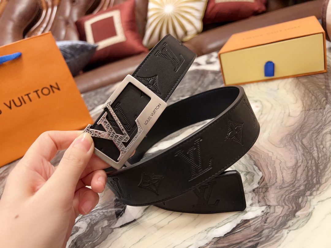 Home Belt LV belt Louis Vuitton square V buckle black textured belt, simple and elegant, noble and luxurious