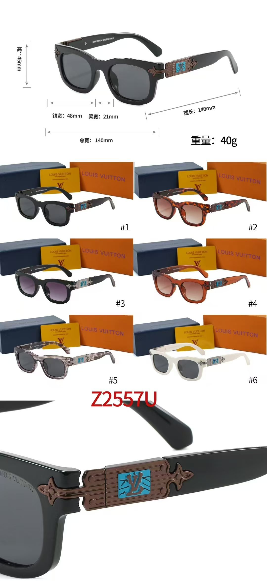 With precise dimensions—lens width: 48mm, bridge width: 21mm, temple length: 140mm, total width: 140mm, and a weight of 40g—they offer a comfortable fit while providing excellent UV protection.