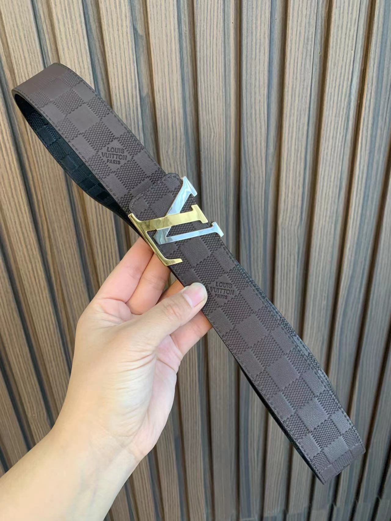 Home Belt LV belt Louis Vuitton two-color buckle check belt, fashionable and classic, low-key luxury