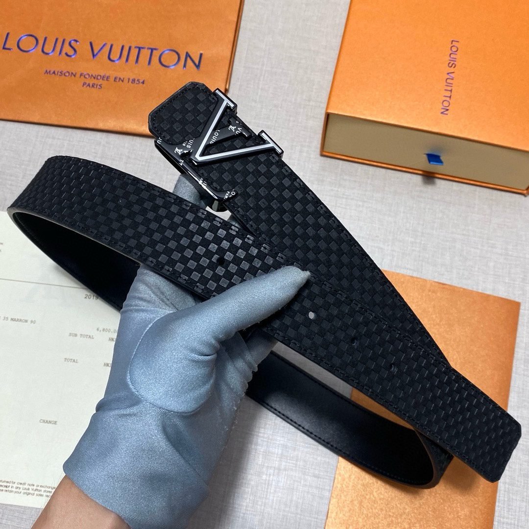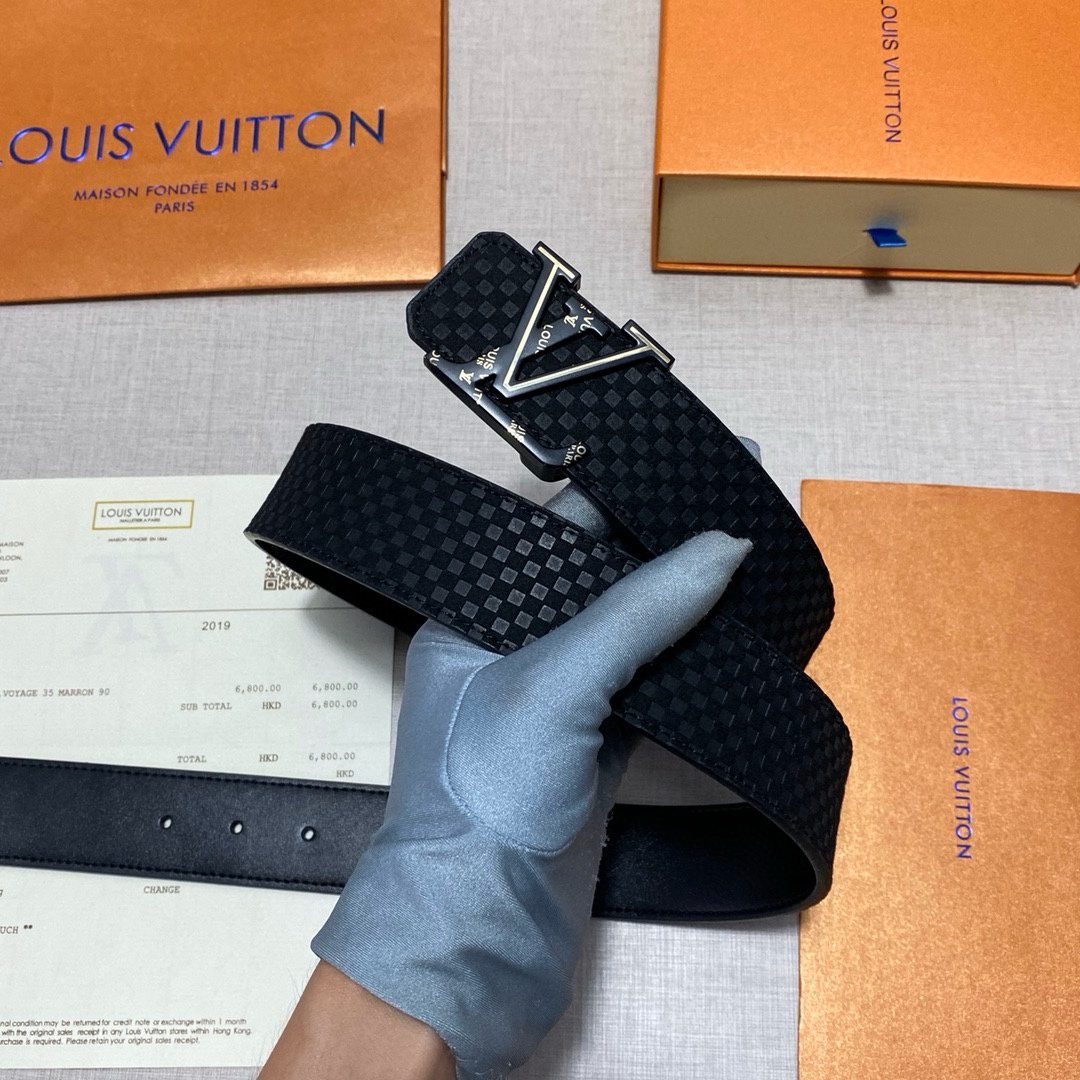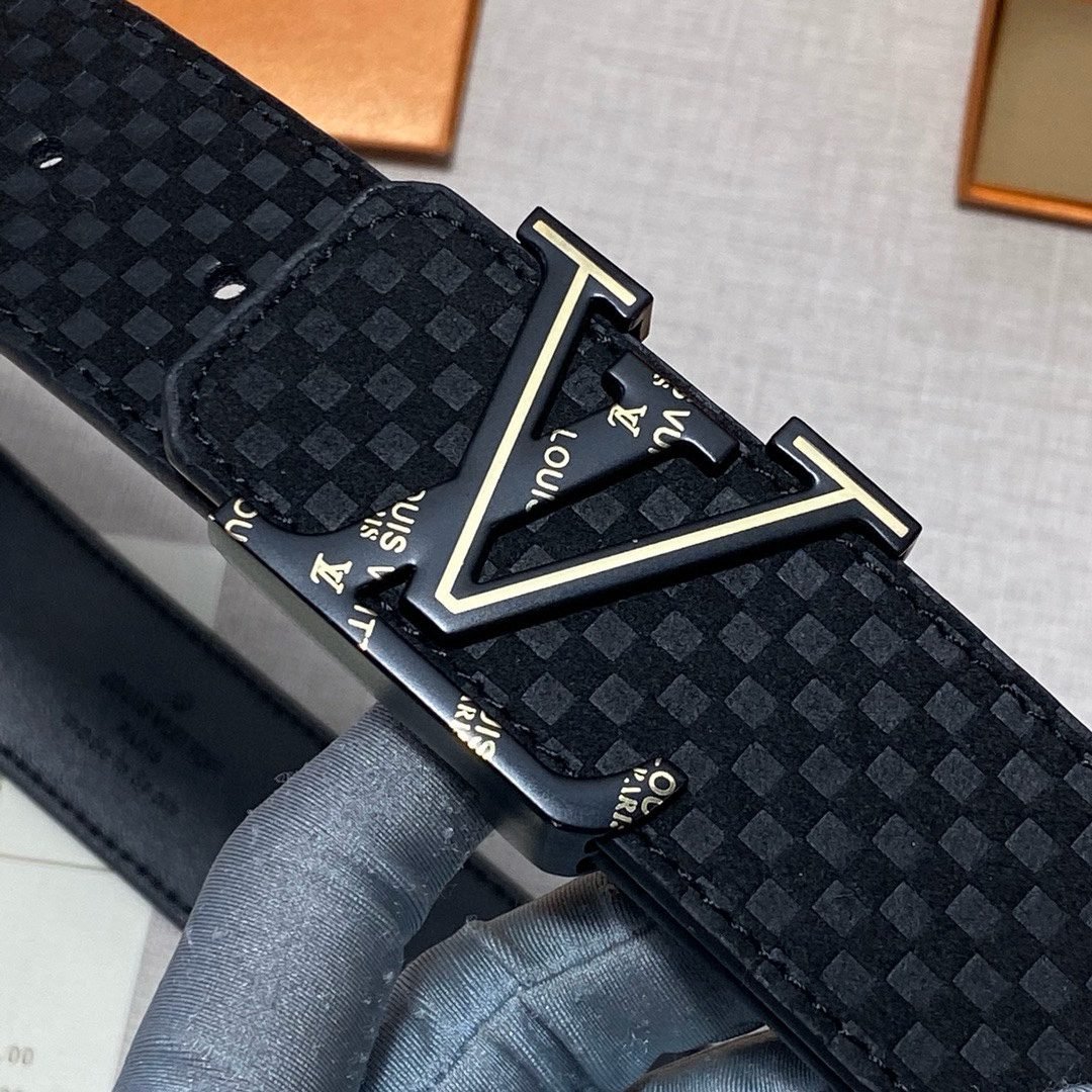 Home Belt LV belt Louis Vuitton V-buckle black plaid belt, simple and elegant, noble and elegant