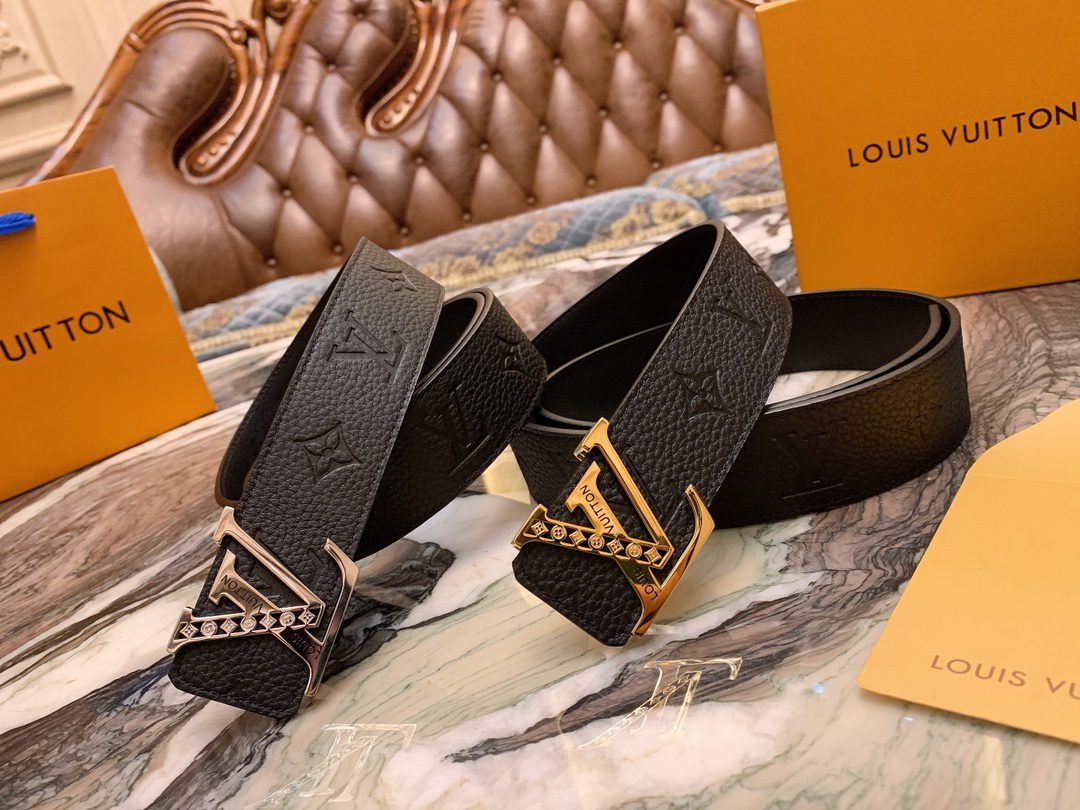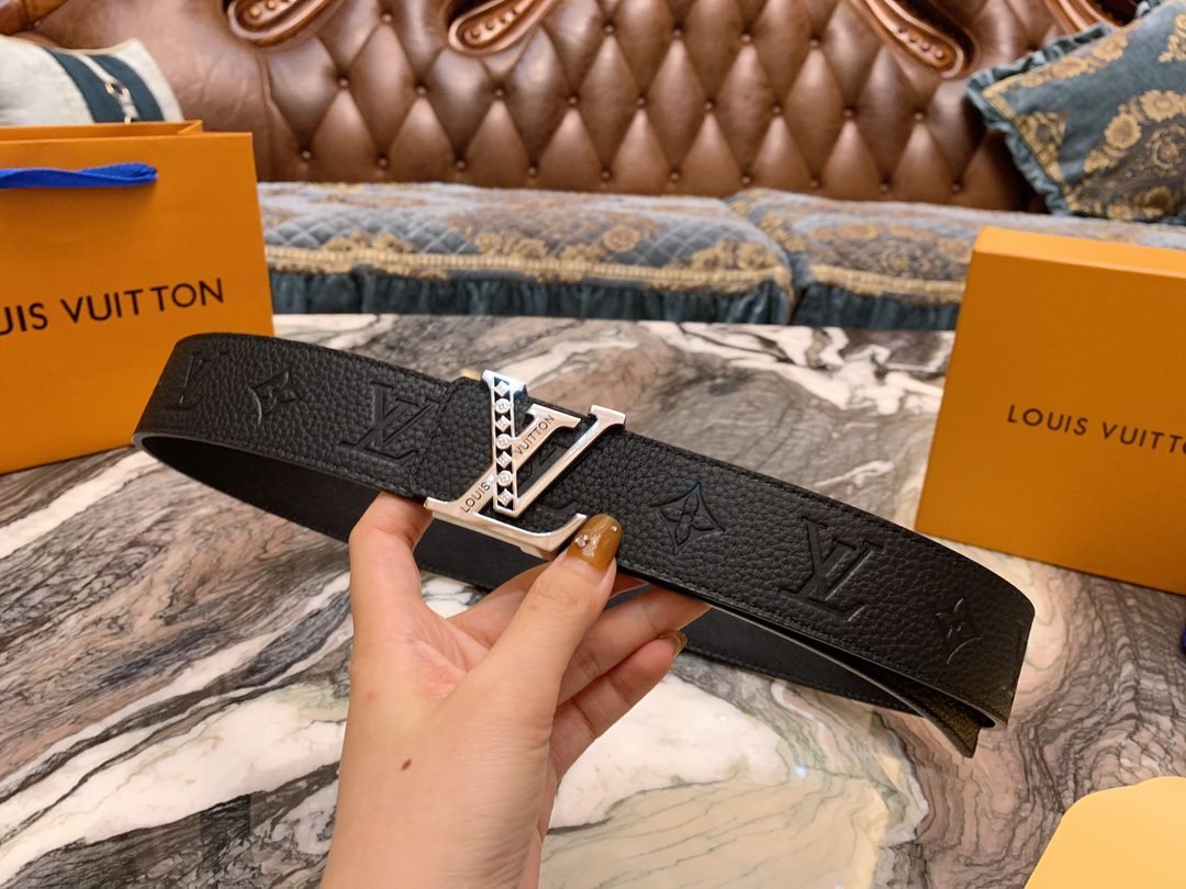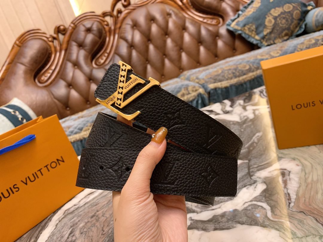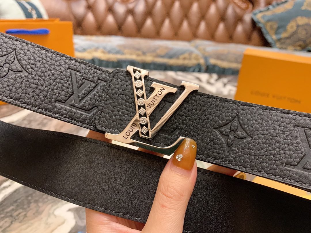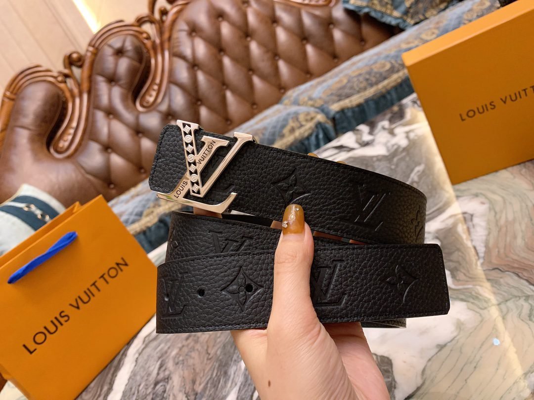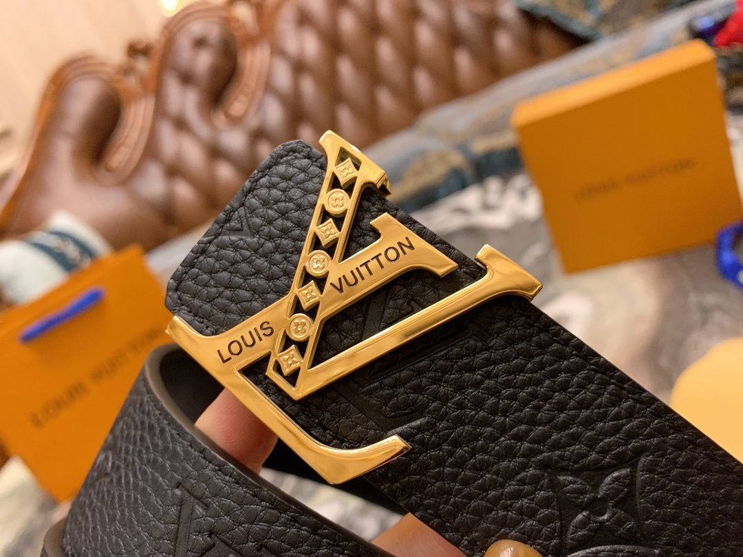 The Louis Vuitton V-buckle black textured belt is based on selected black leather, showing unparalleled texture and luster. The belt buckle is made of metal and is engraved with the brand’s iconic “LOUIS VUITTON” and a delicate V-shaped logo, highlighting the brand’s luxury and sophistication.