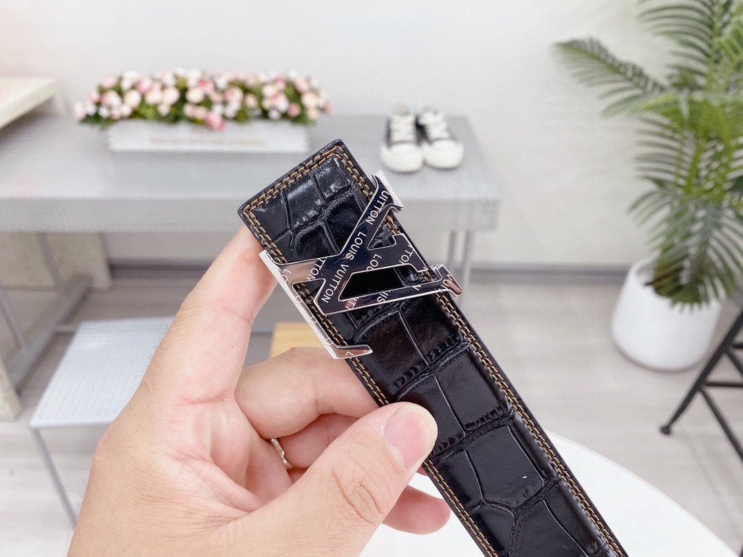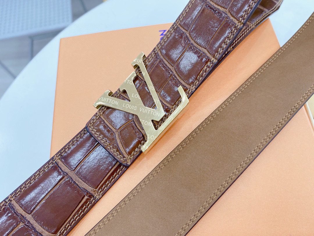 Louis Vuitton’s V-buckle crocodile pattern belt combines exquisite craftsmanship and top-quality materials. Made of top-grade leather material, the leather is fine and soft, with a unique and layered texture. The metal “LV” logo buckle is exquisite and elegant, highlighting the nobility and luxury of the brand.