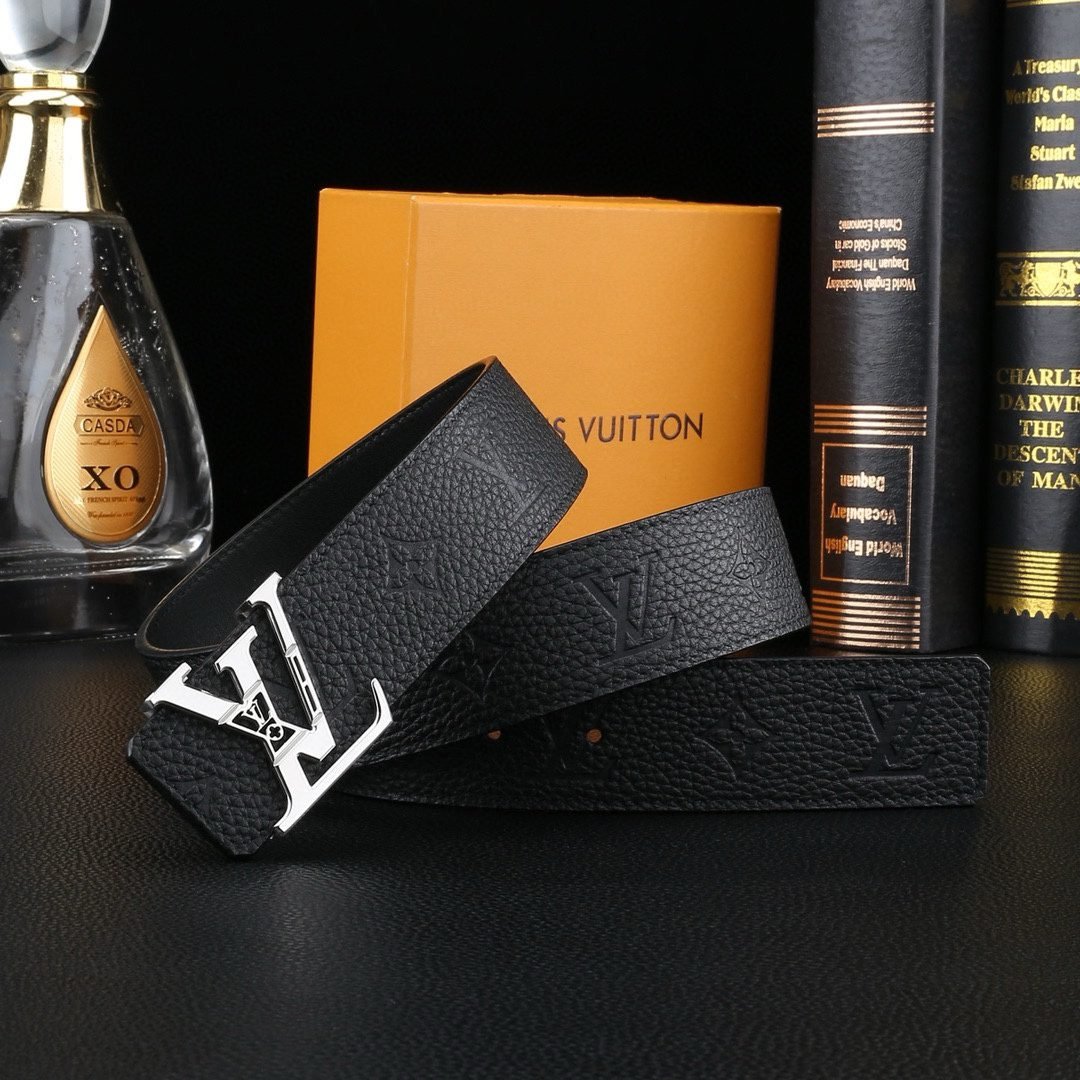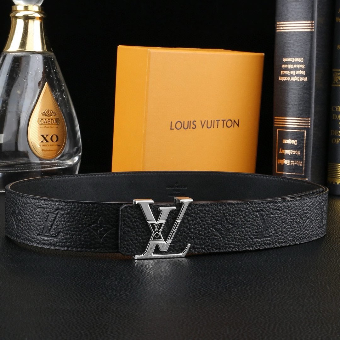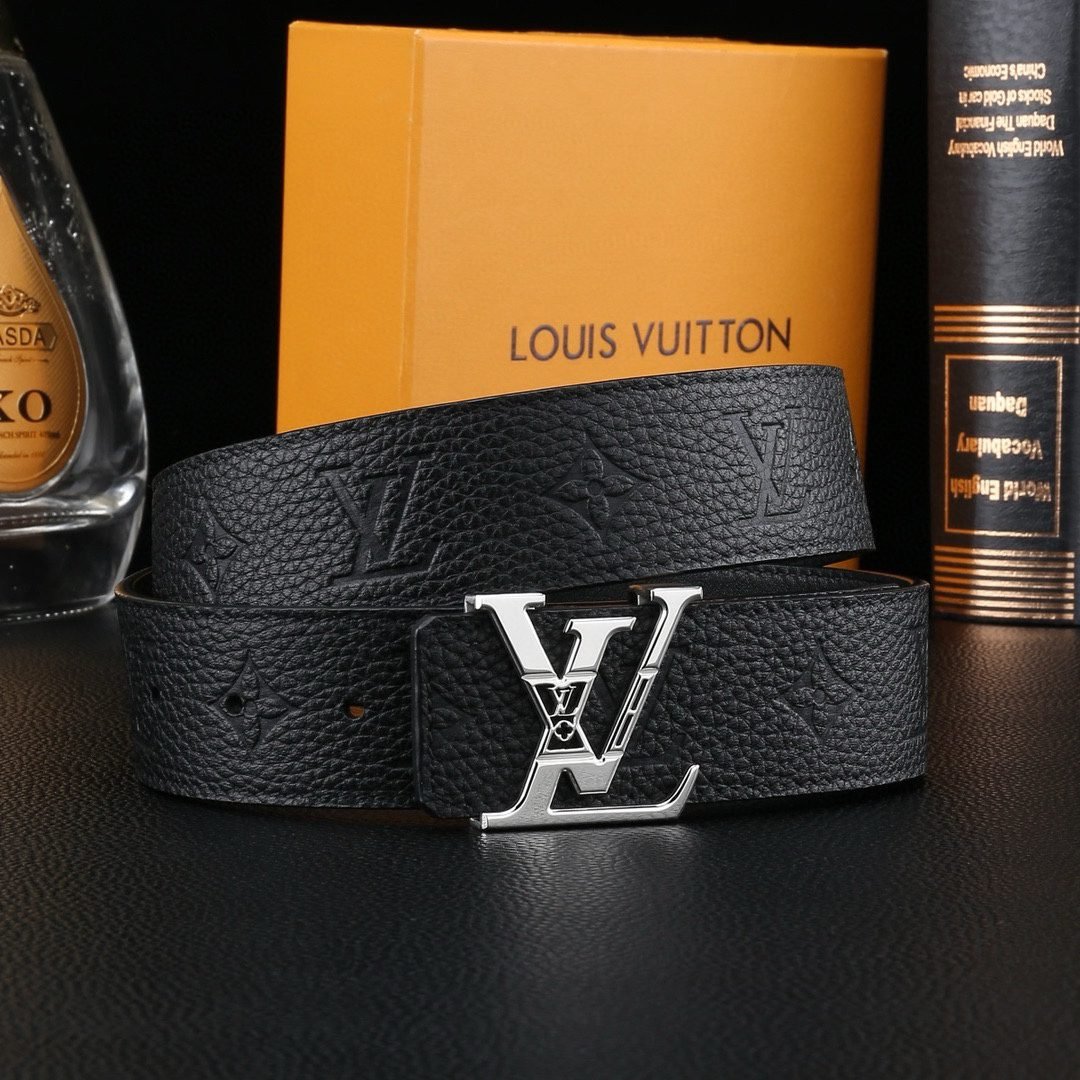 Louis Vuitton’s V-buckle black textured belt perfectly blends elegance and luxury. Selected high-quality leather material, finely polished and treated with unique techniques, showing unique texture and luster, soft and delicate touch, highlighting extraordinary texture. The belt buckle head is made of high-grade metal material and is exquisitely inlaid with Louis Vuitton’s iconic “LV” letters. The golden luster shines brightly, showing the wearer’s noble taste and unique personality.