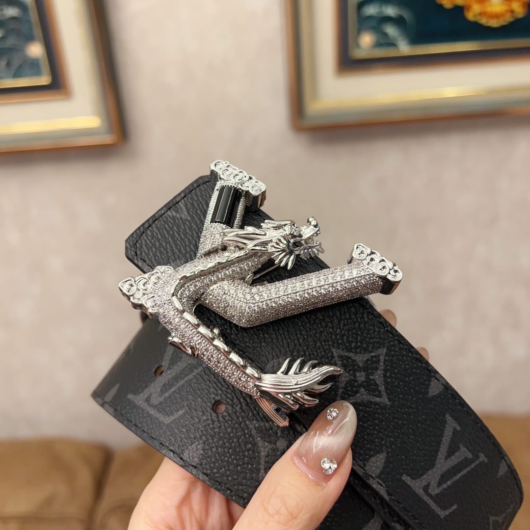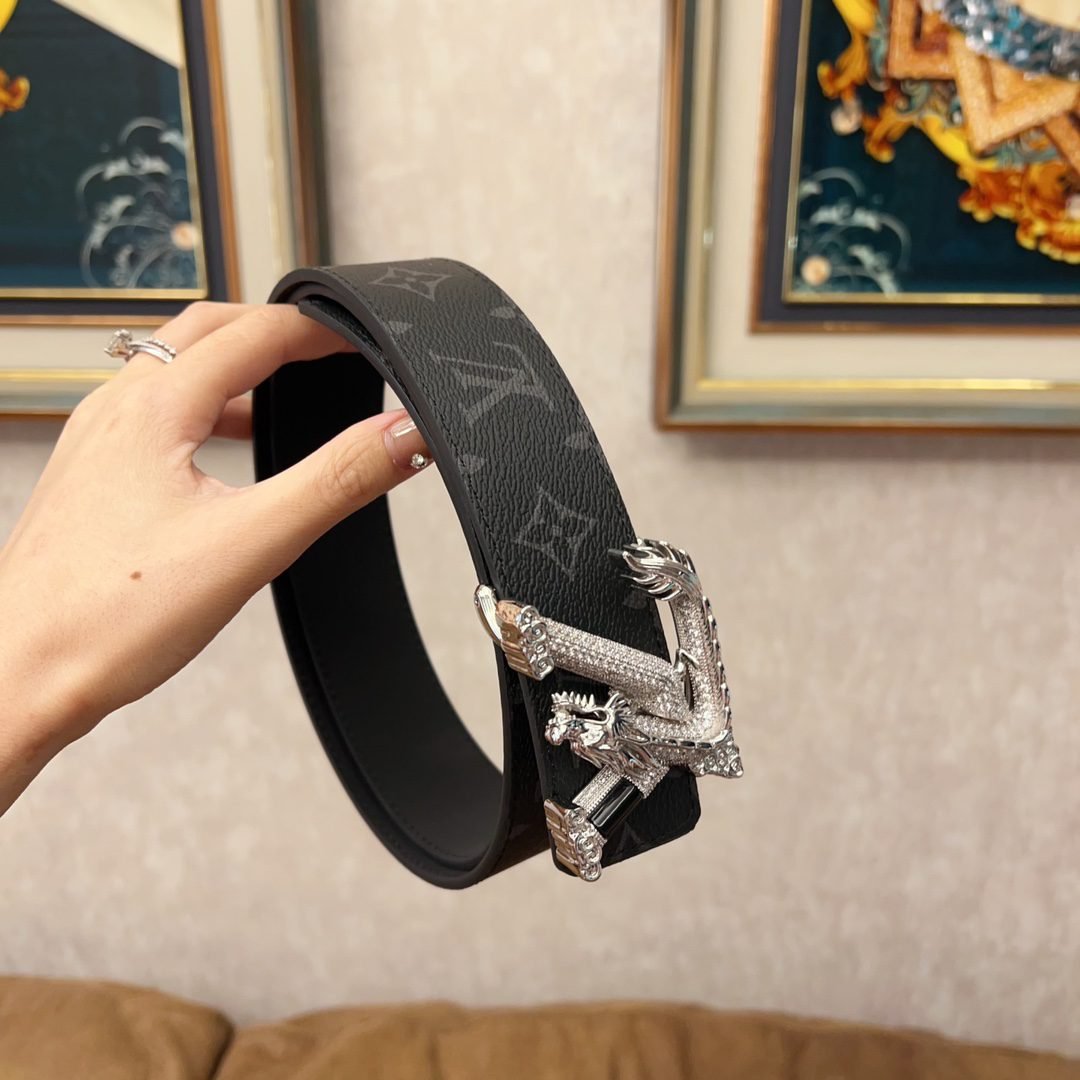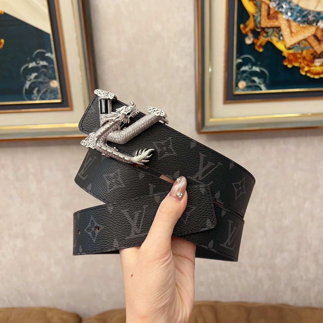 LV dragon pattern luxury black texture belt, high-end, noble and elegant