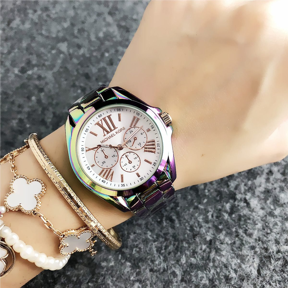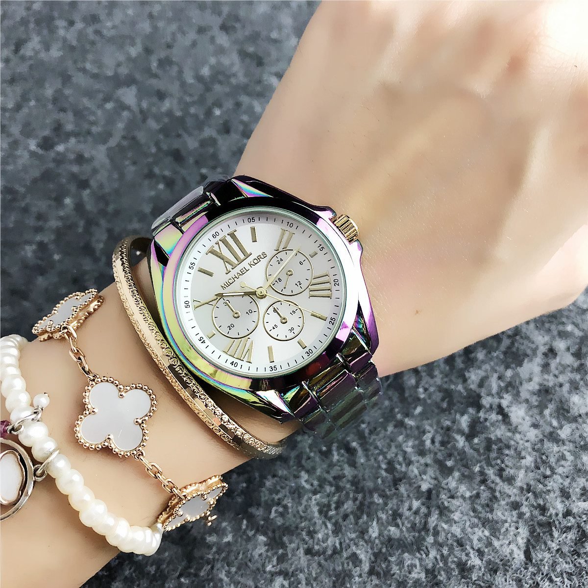 The design style of MK watches combines fashion and luxury, emphasizing the presentation of details and craftsmanship.
