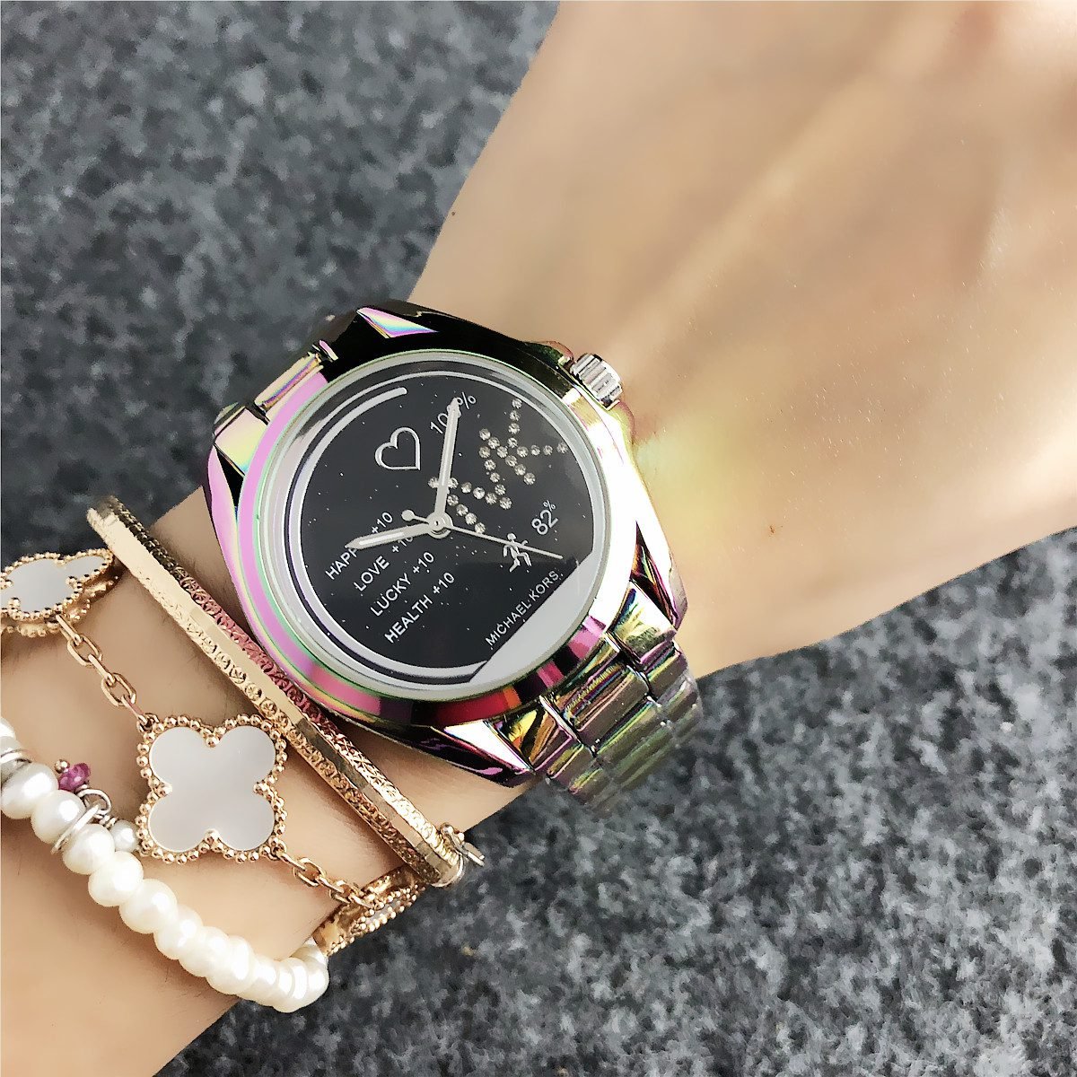 The design style of MK watches combines fashion and luxury, emphasizing the presentation of details and craftsmanship.