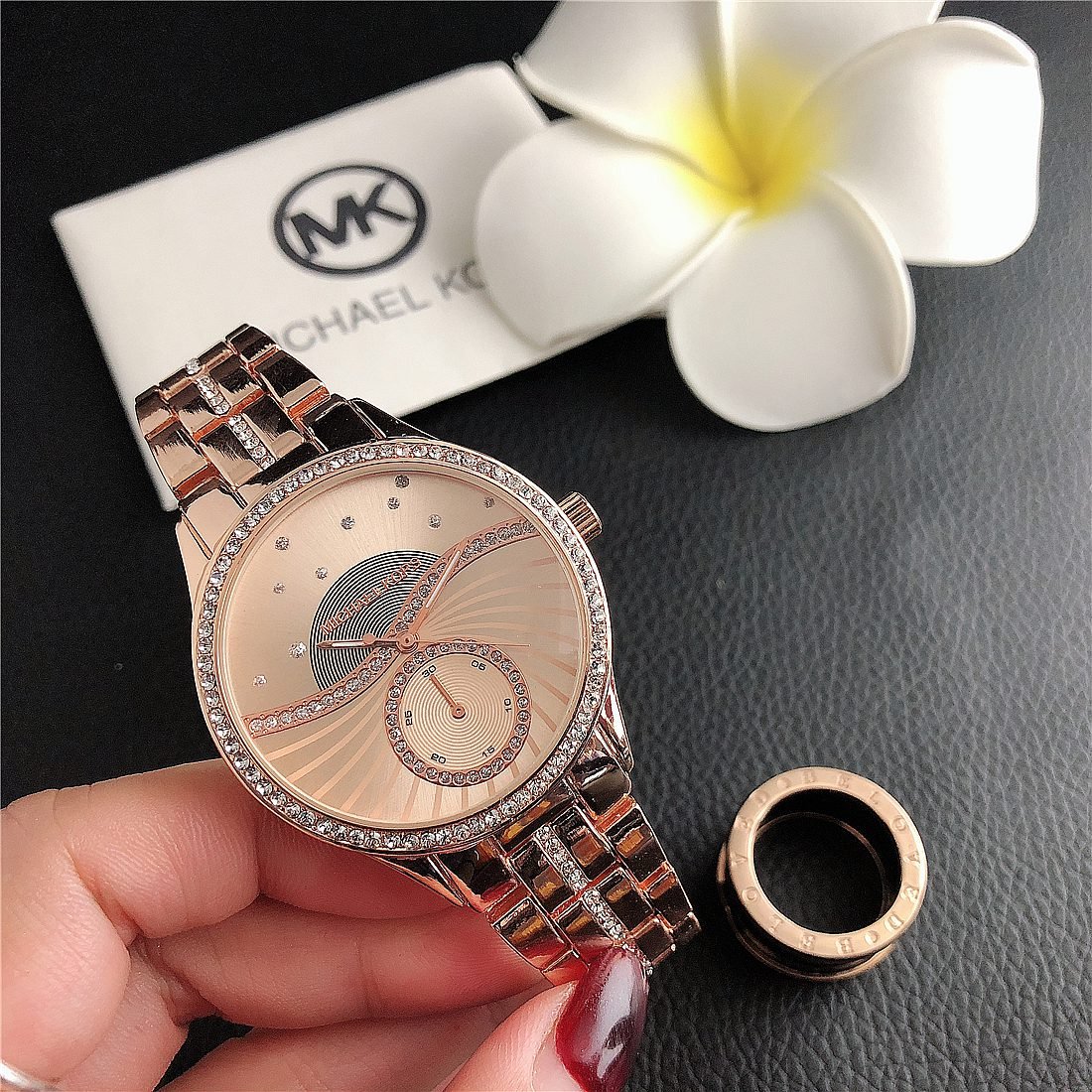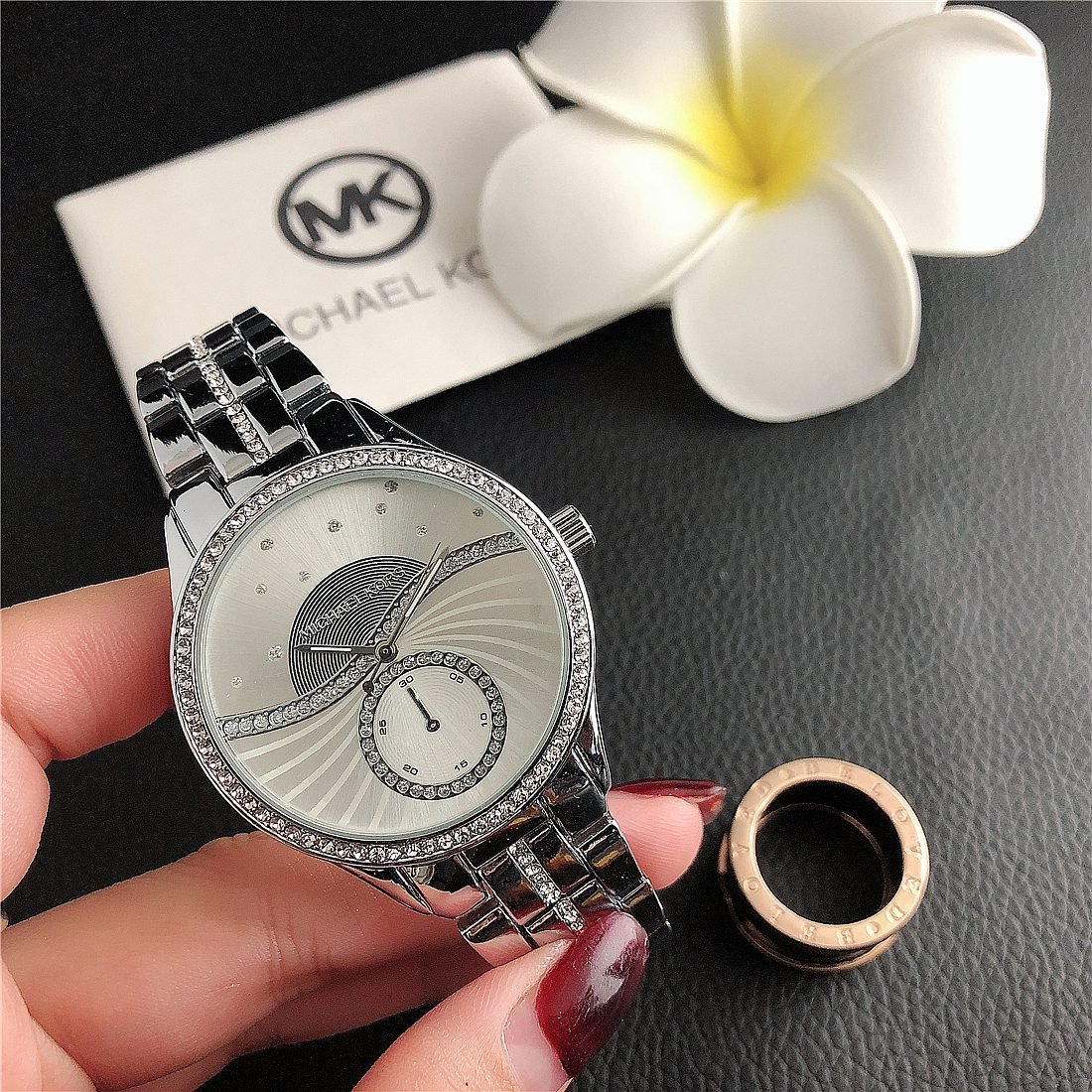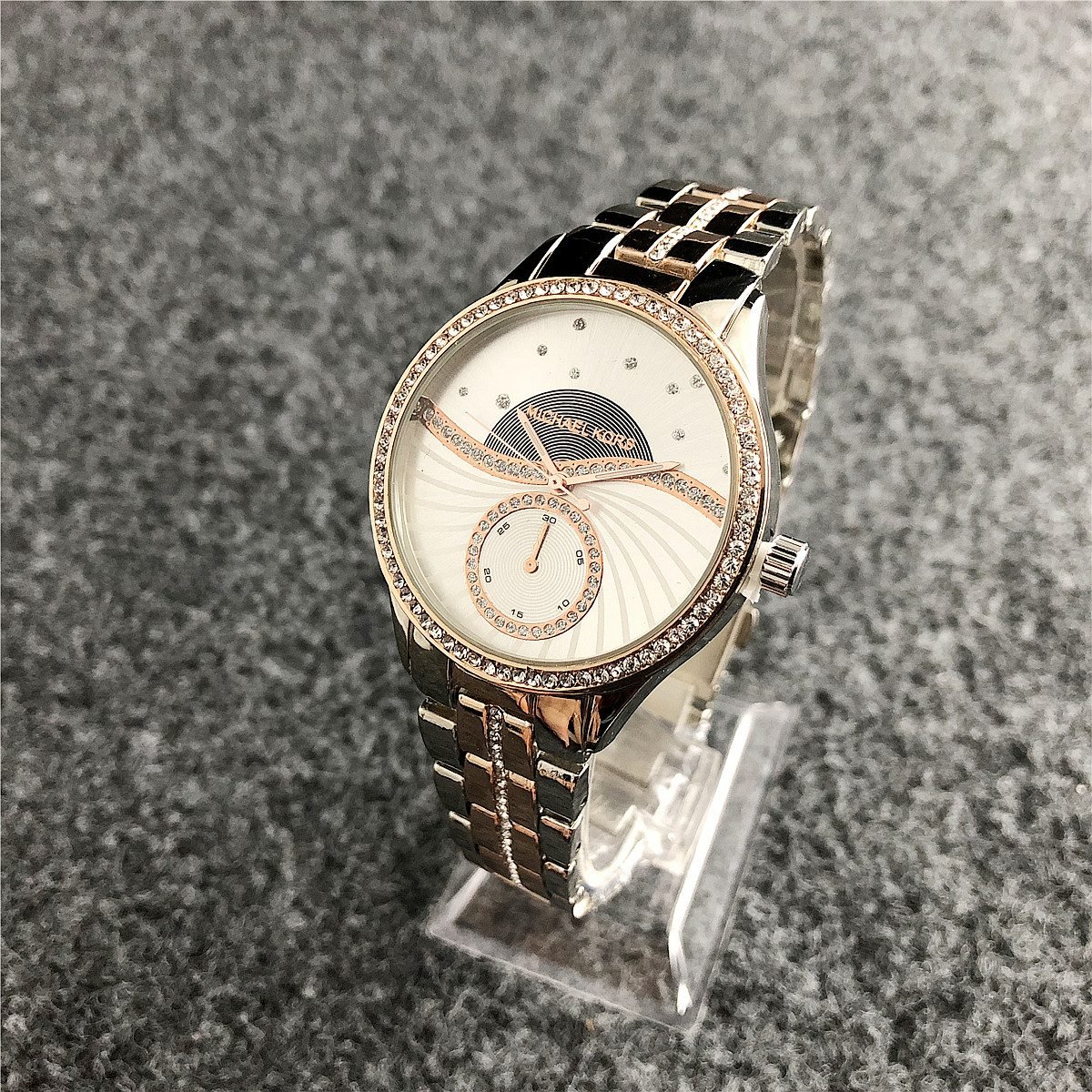The design style of MK watches combines fashion and luxury, emphasizing the presentation of details and craftsmanship.