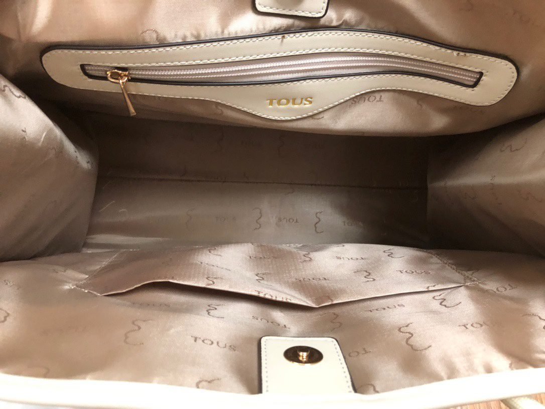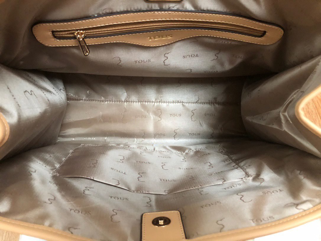 Tous large tote bag, made of waterproof canvas with buckle opening and closing. The shoulder strap is not removable. Internal