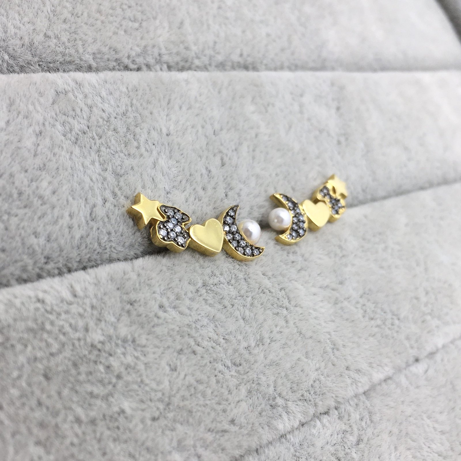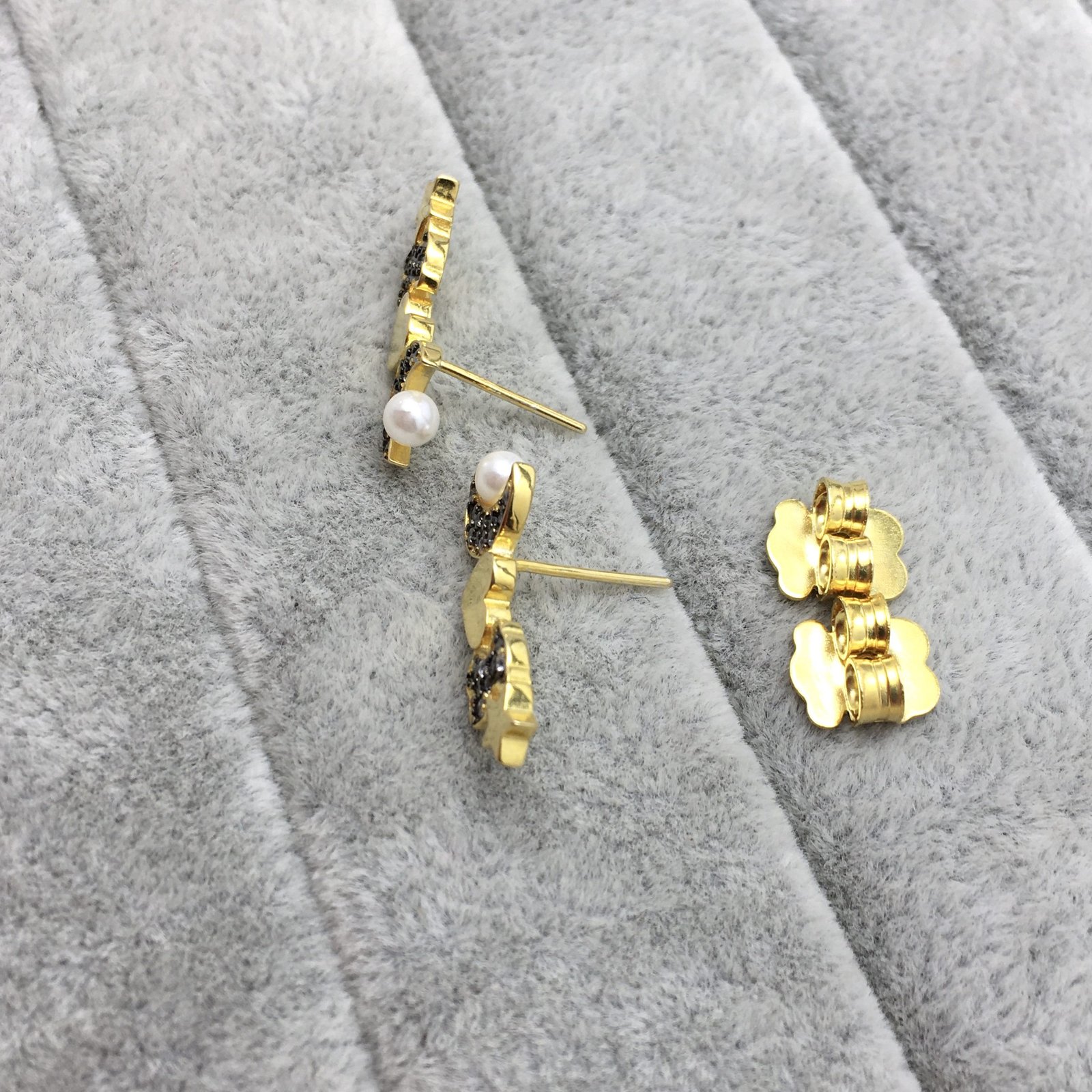 Nocturne Earrings in Silver Vermeil with Diamonds and Pearl