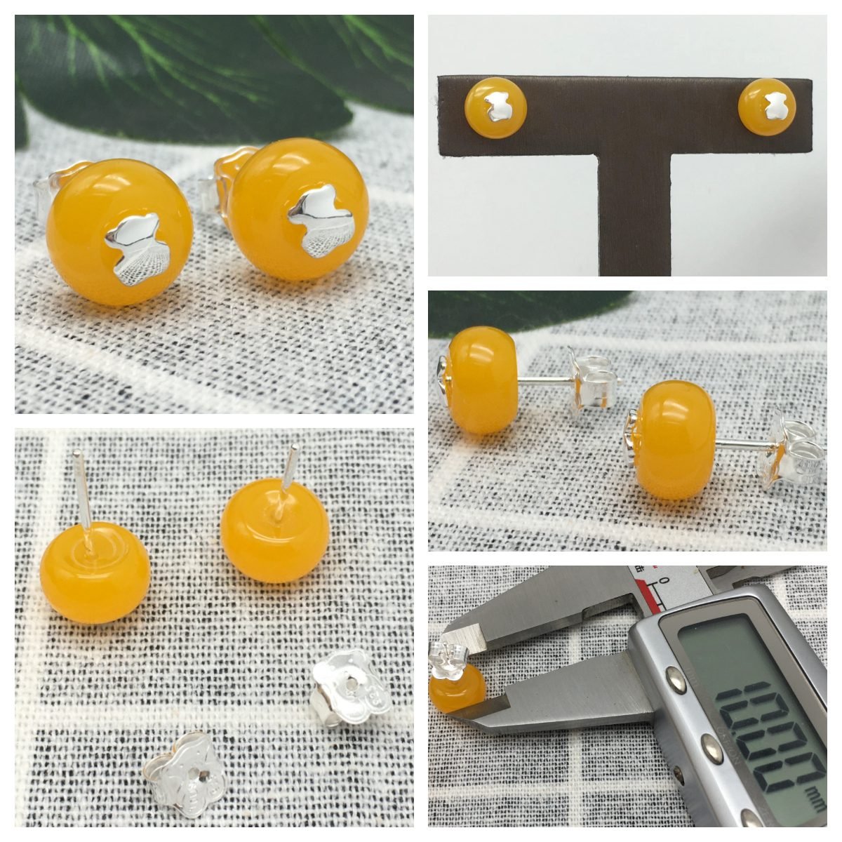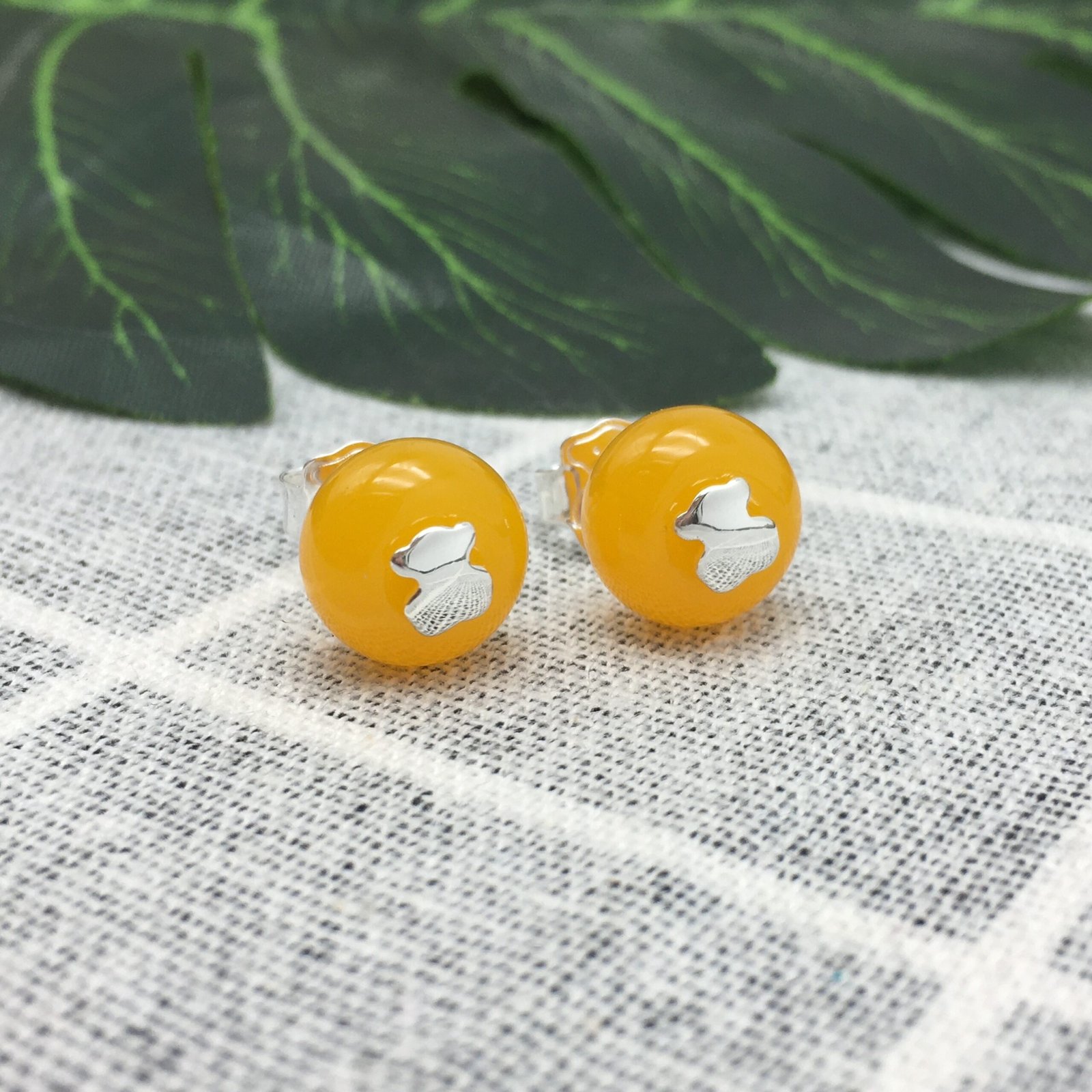 TOUS Icon Glass earrings in sterling silver and orange colored Murano glass with a bear motif in sterling silver. Size: Ø 10 mm. Push back.