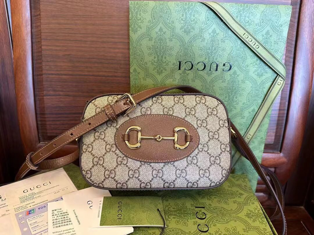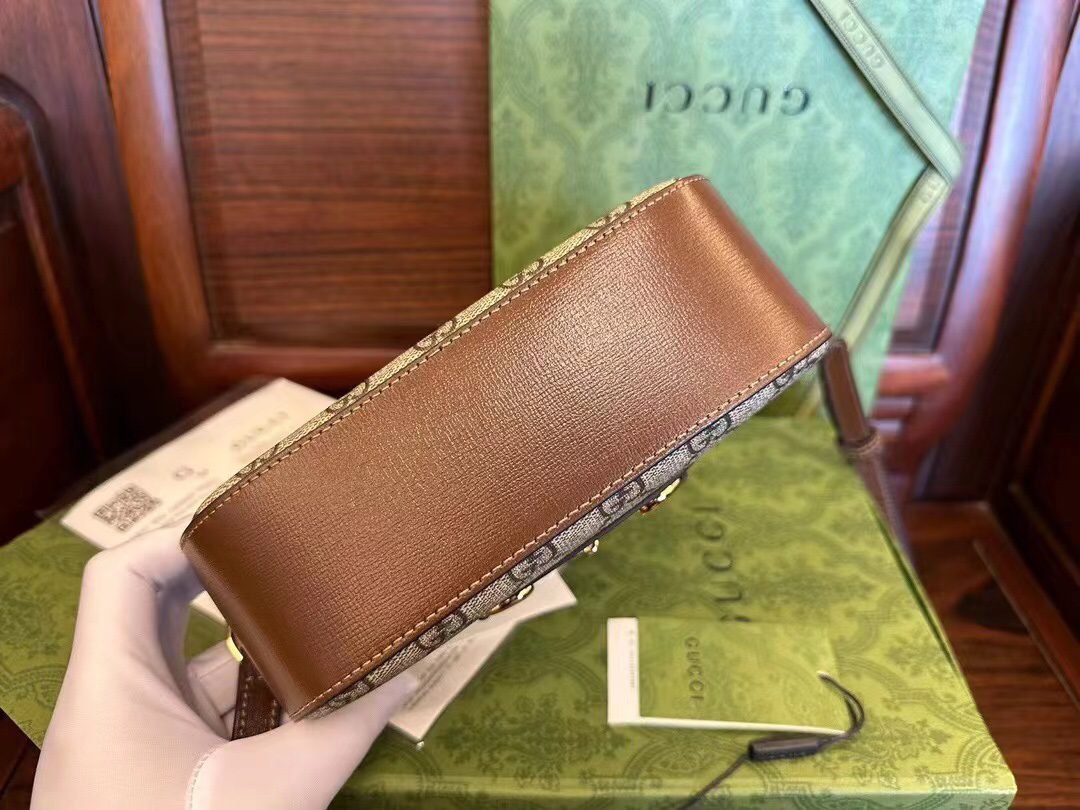 [Original leather] The new series presents the Gucci 760196Horsebit 1955 series small shoulder bag, which has both versatile features and practical functions. This shoulder bag is crafted in classic beige and ebony GG Supreme canvas. The zipper closure and adjustable shoulder straps make the entire design fuller! Size: 20/13/6cm [with original factory packaging]
