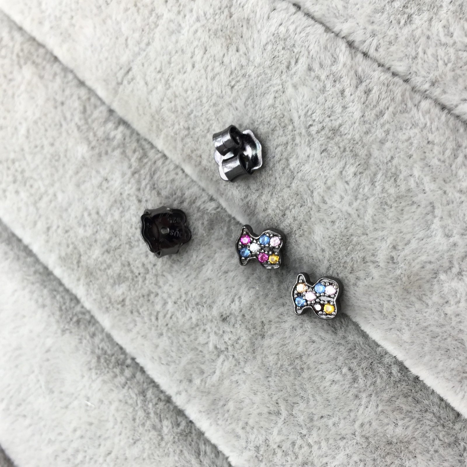 TOUS Fantasy earrings in oxidized sterling silver with multicolor sapphires. Size: 0.64 cm. Push back.