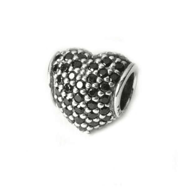 Pandora 925 Silver 791052NCK Black Heart Set Precious Stone