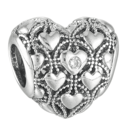 Pandora 925 Silver 791912D Heart shaped Solid Color Beaded Heart shaped Center String Decoration High Fashion Versatile Jewelry Simple Silver Jewelry