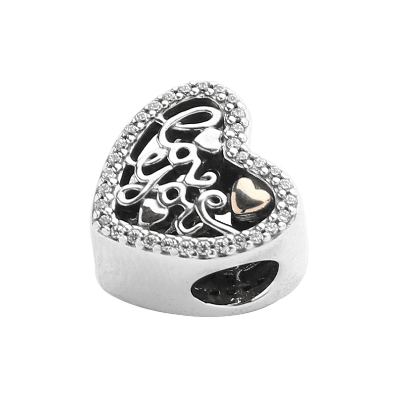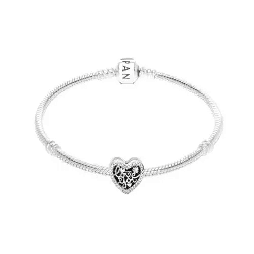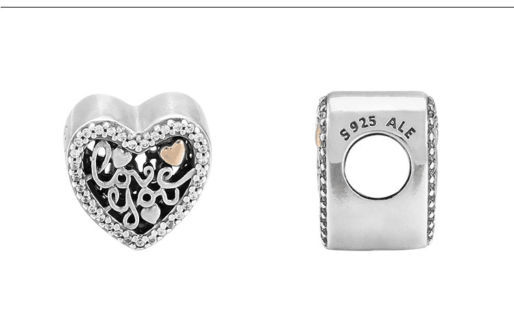 Pandora 925 silver 792037CZ hollow out love you heart-shaped string decoration heart set sparkling beads