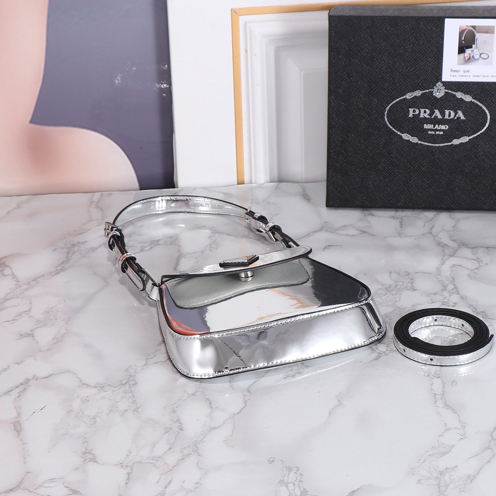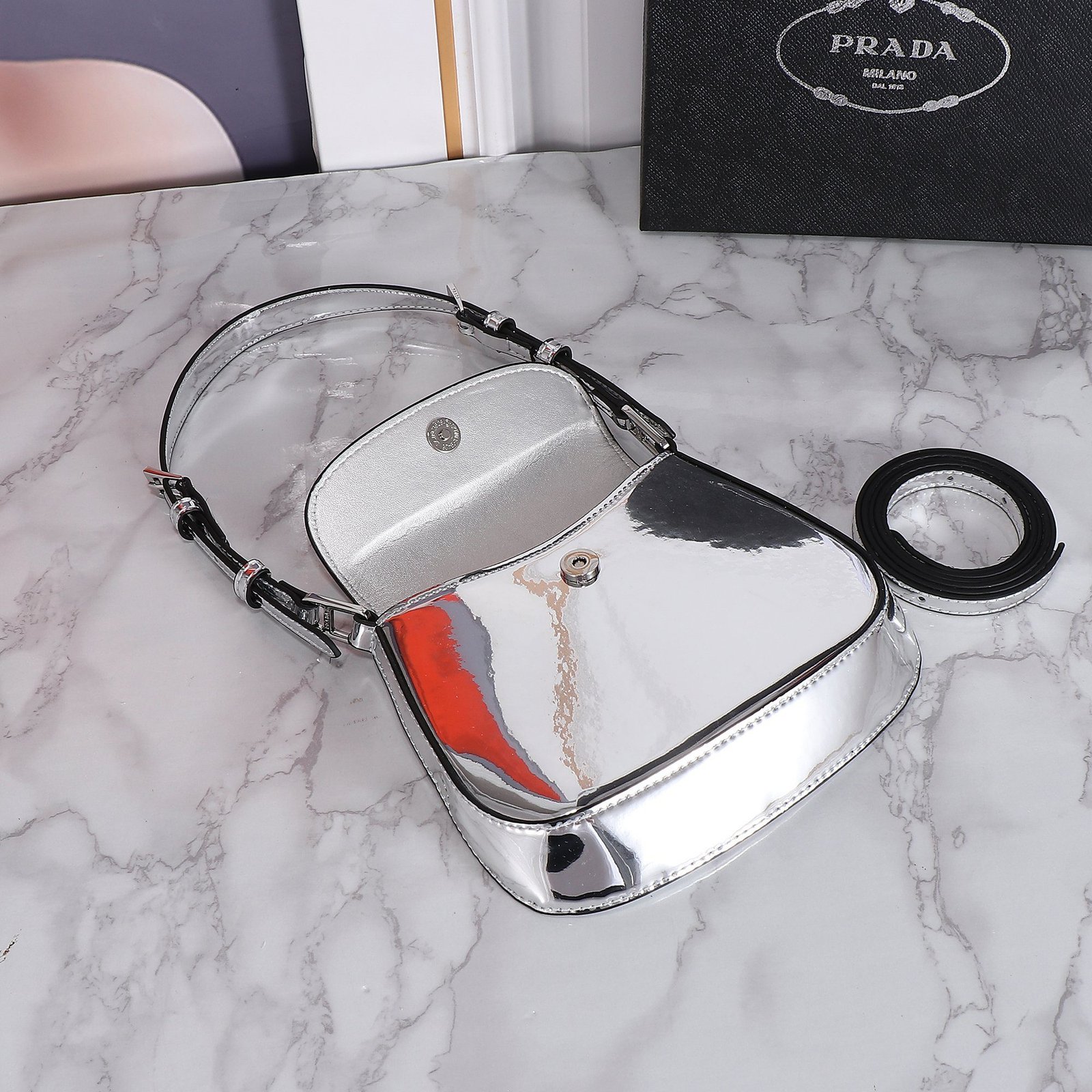 Be the first to review “Prada hobo cleo Patent leather 611 sliver size:22*13cm” Cancel reply