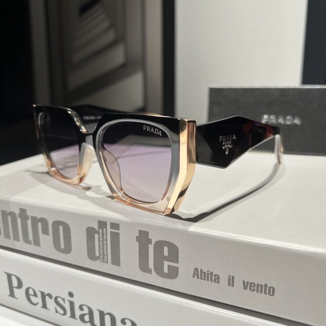 PRADA, This globally renowned luxury brand has always attracted countless consumers with its exquisite craftsmanship, excellent quality, and unparalleled fashion sense. The lenses are made with advanced technology and have anti UV and anti glare functions, which can effectively protect your eyes from sunlight damage. At the same time, the color of the lenses is moderate, which can block strong light without making the field of view too dim. Whether as a fashion accessory or for daily wear, this pair of sunglasses can add a touch of brightness to your look, showcasing your personality and taste. Come and buy now, let this pair of glasses add more brilliance and charm to your every day!