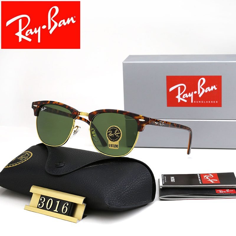 Ray Ban Club Master Havana gold framed and green framed sunglasses with square and circular frames for both men and women