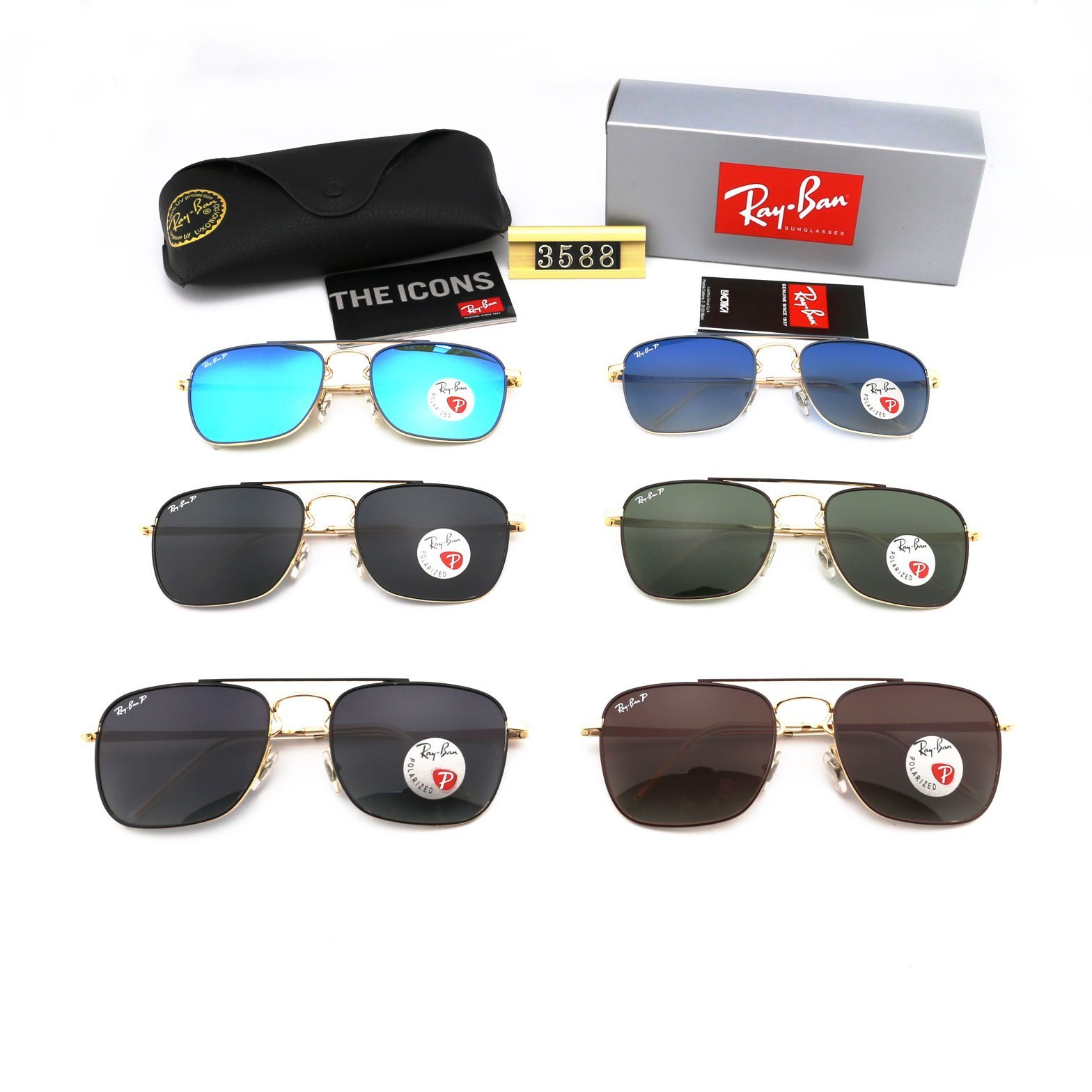 Ray Ban silver square color film reflective sunglasses for both men and women