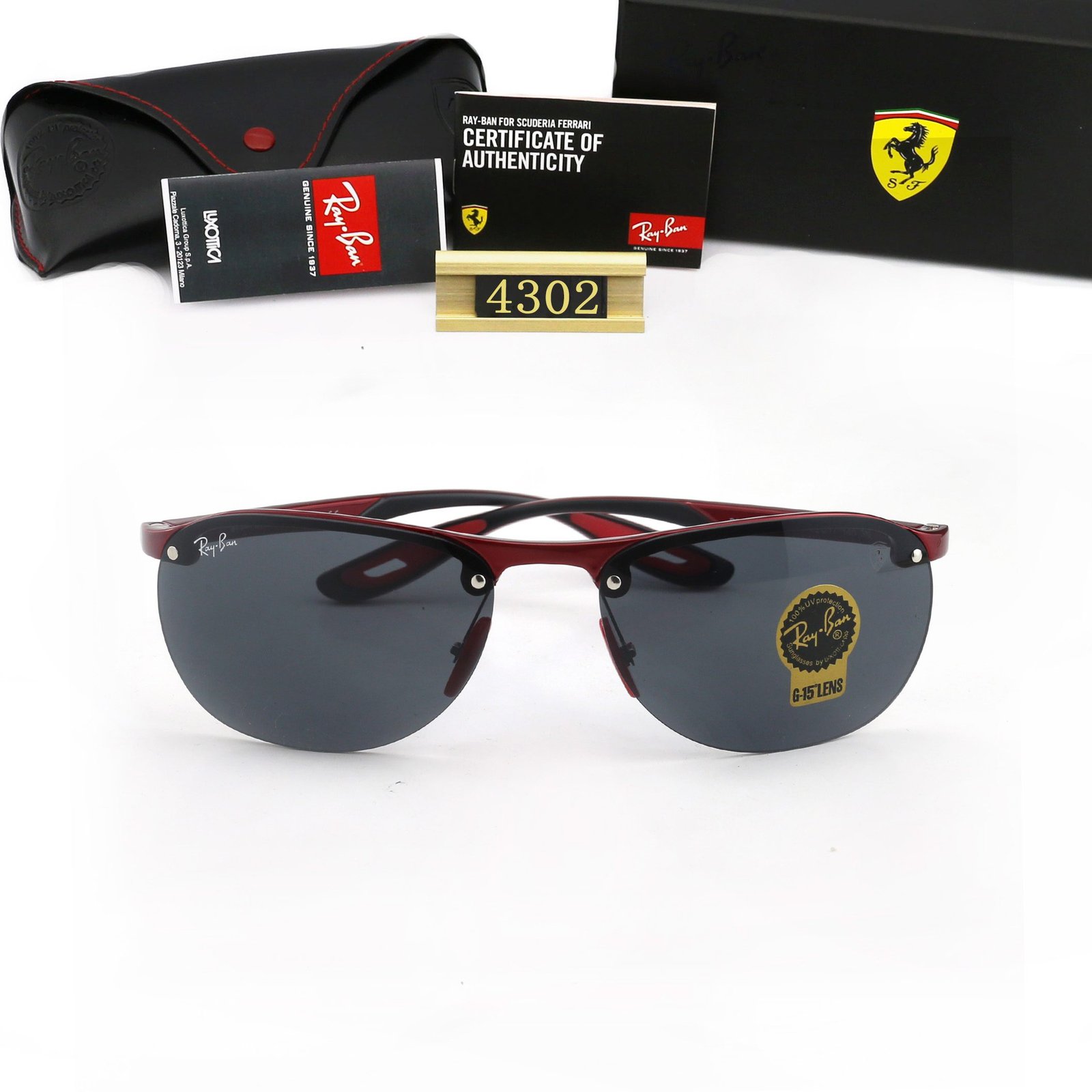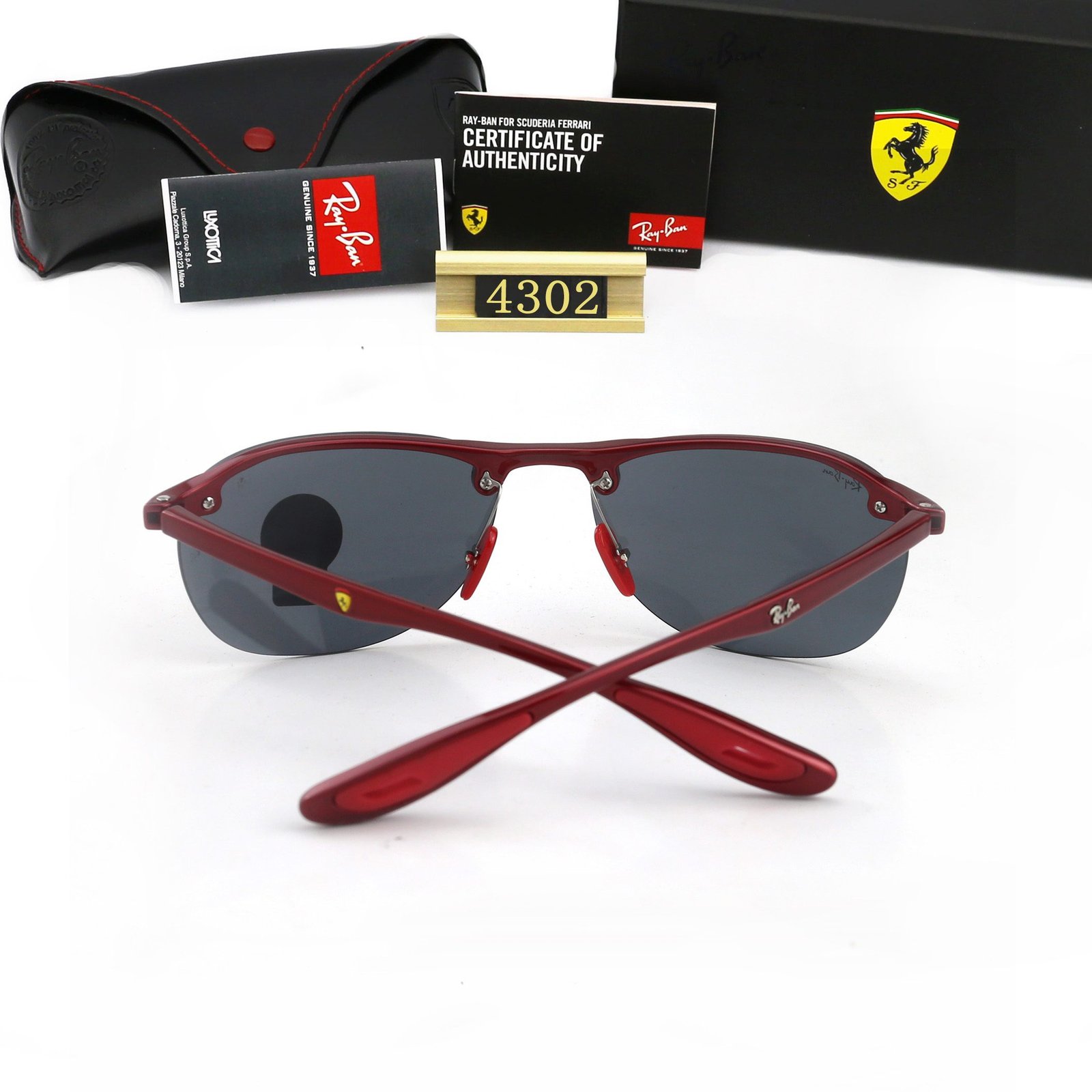 Designed specifically for individuals with an outgoing personality and a dynamic lifestyle, Ferrari Racing has teamed up with Ray Ban to launch the new RB4302M model. Decorated with classic team logos, such as a shield pattern carved on the lens and the Ferrari team shield logo embellished in the center of the left mirror leg.
