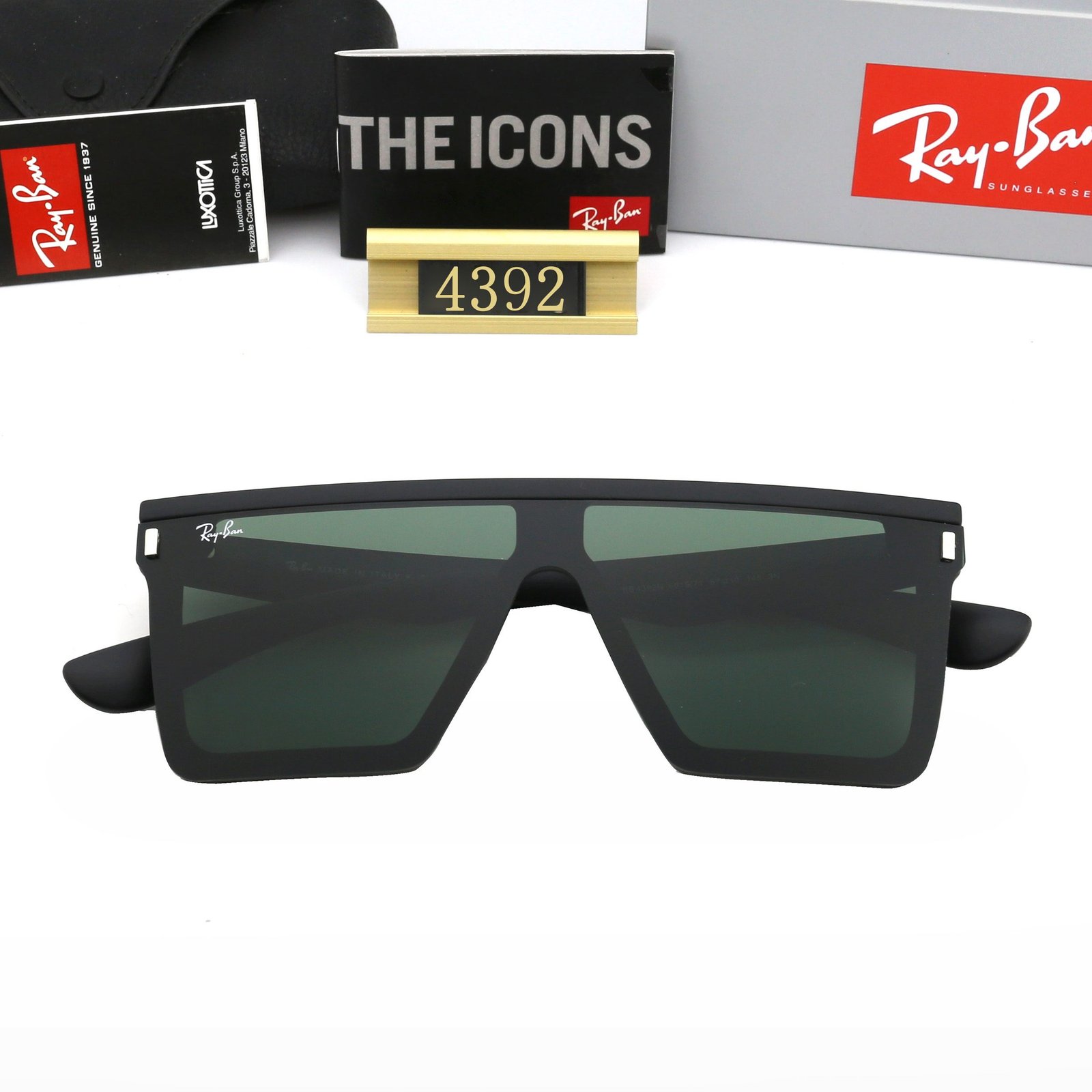 Choose RB4392D sunglasses with geometric shapes on the frame, these sunglasses are ready for everything. Flat lenses keep them fresh and trendy. Introducing solid color and polarized lenses – transparent and classic black.