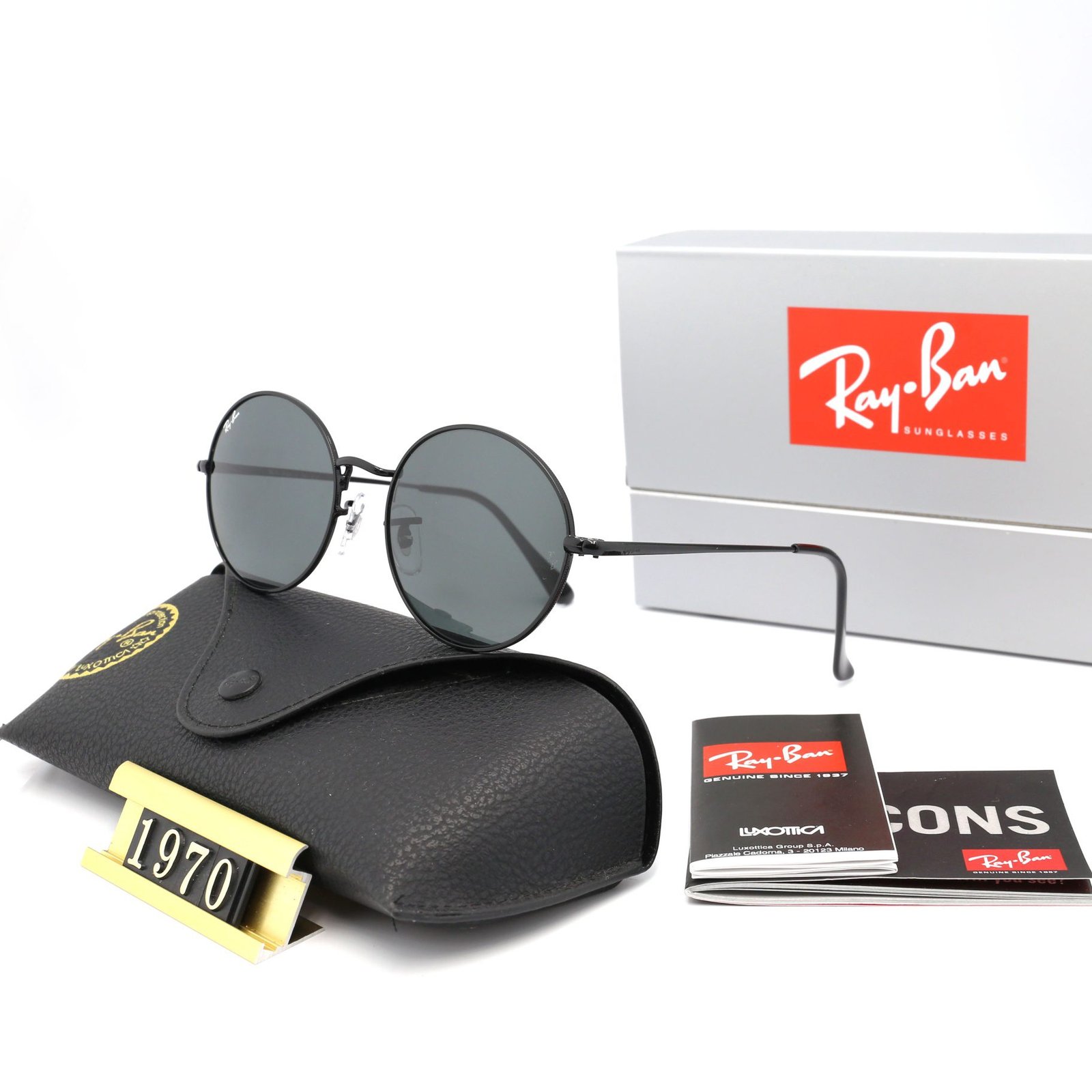 Home SUNGLASSES Sunglasses-Ray Ban Ray Ban1970 black and gray circular colored sunglasses for both men and women