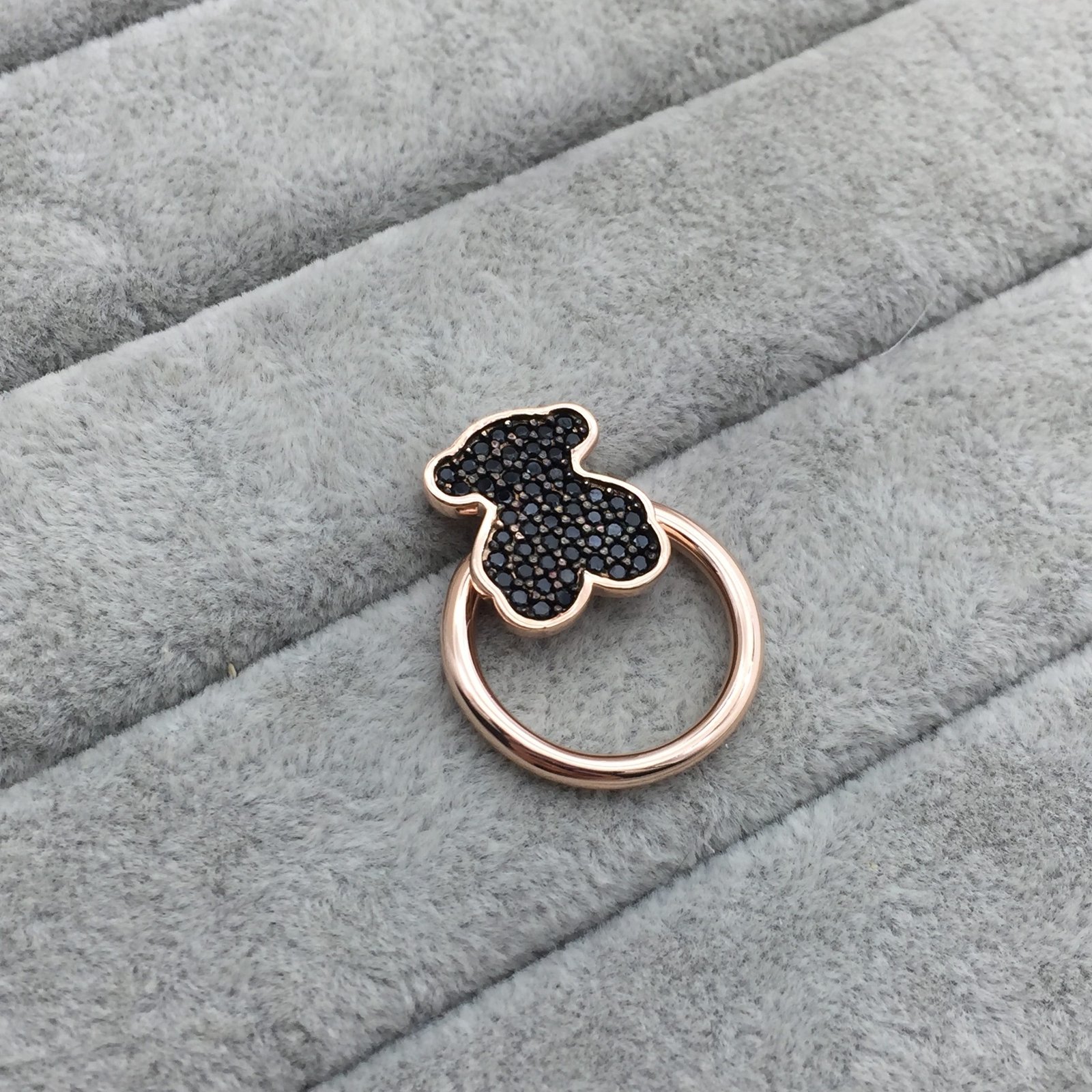 TOUS Join ring in rose vermeil silver with bear and spinel. Size: 1.6 cm. Vermeil: Sterling silver plated with a layer of 18kt rose gold.