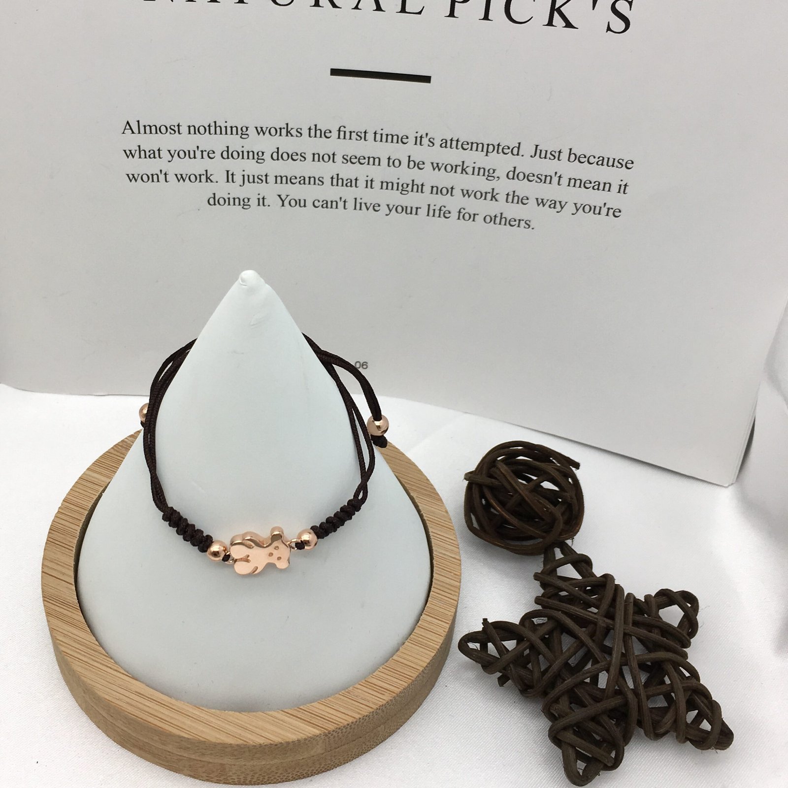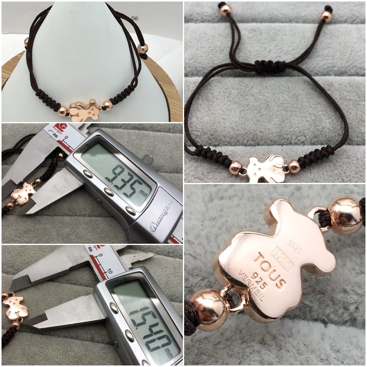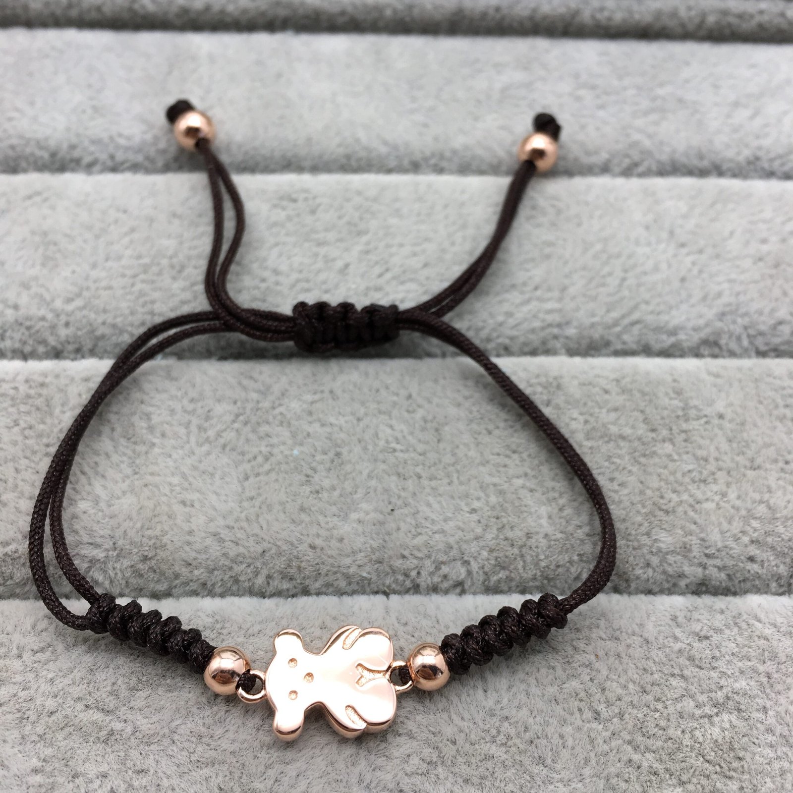 TOUS Sweet Dolls bracelet in rose silver vermeil and brown cord. Motif: 1,15 cm.