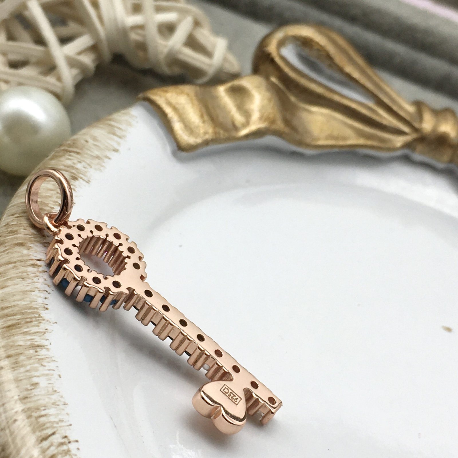 San Valentín key Pendant in Rose Silver Vermeil with Gemstones