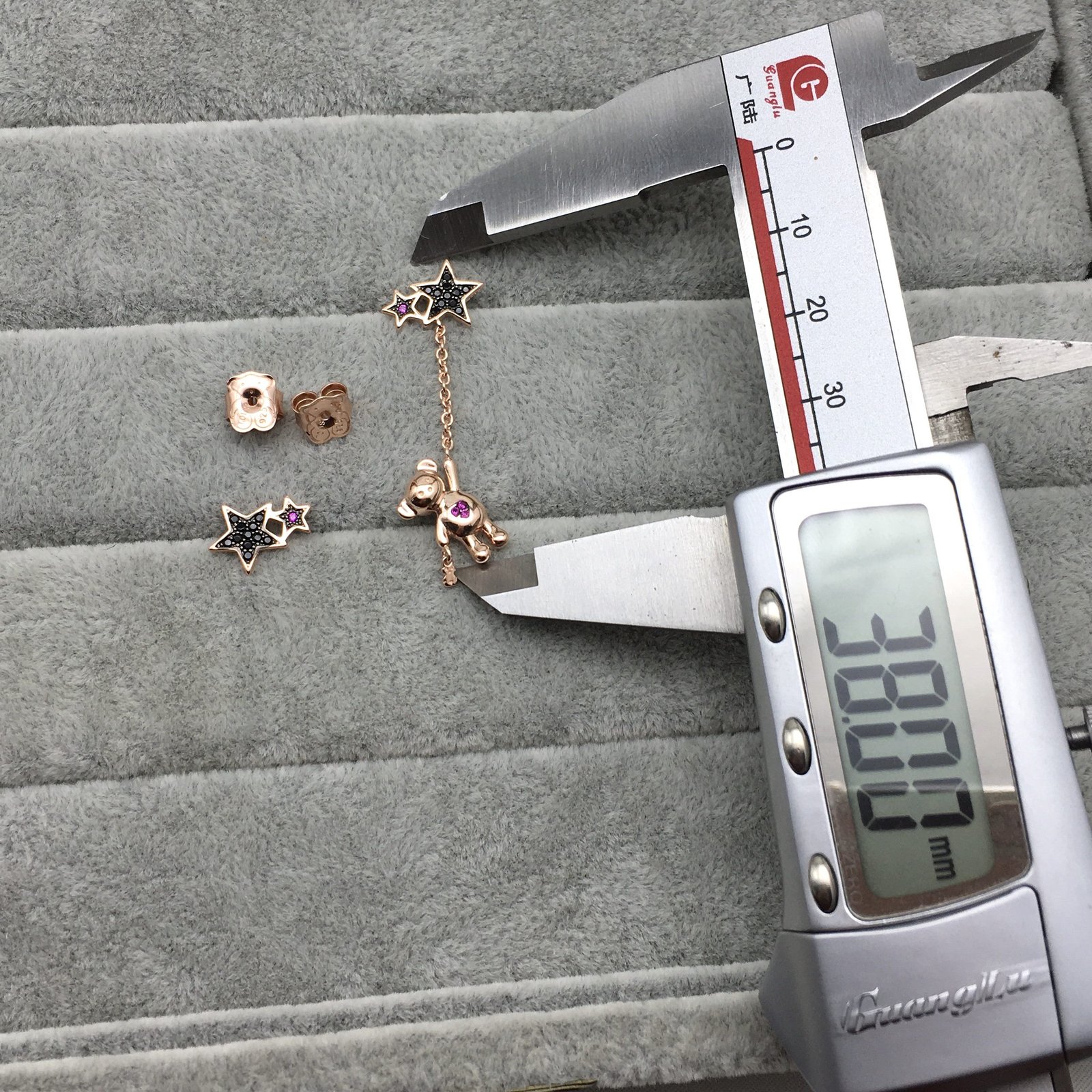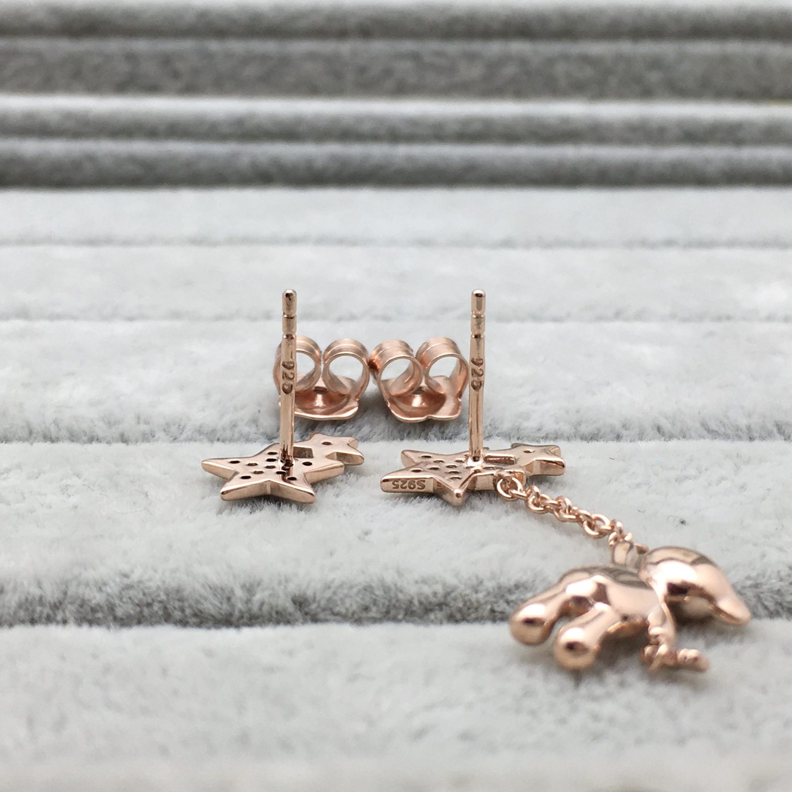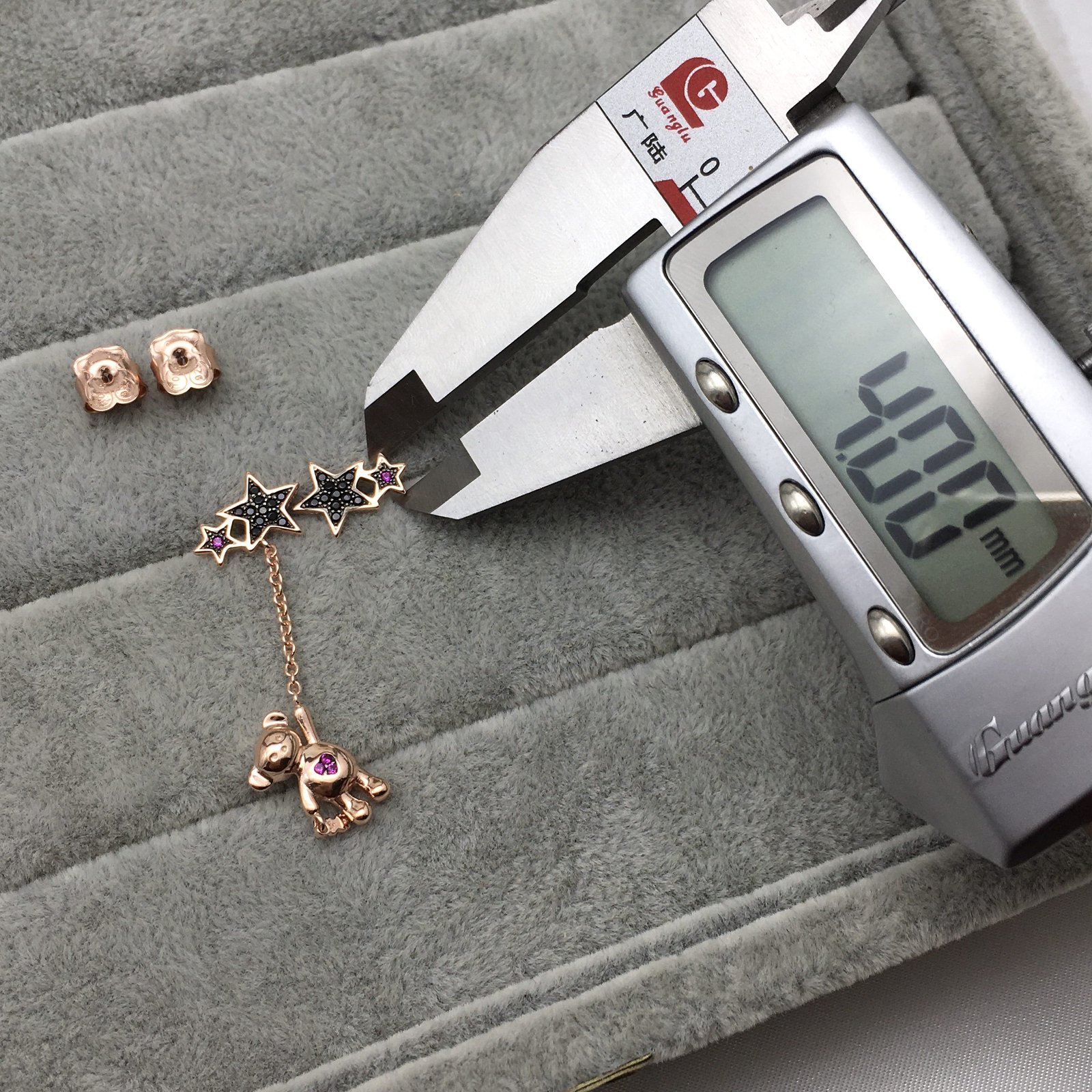 Short/long Rose Silver Vermeil Teddy Bear Stars Earrings with Spinel and Ruby